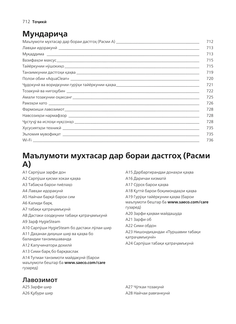 Téléchargez la notice de votre Мошини қаҳваи автоматӣ au format PDF gratuitement ! Retrouvez votre notice XELSIS SUPREMA - SAECO et reprennez votre appareil électronique en main. Sur cette page sont publiés tous les documents nécessaires à l'utilisation de votre appareil XELSIS SUPREMA de la marque SAECO.