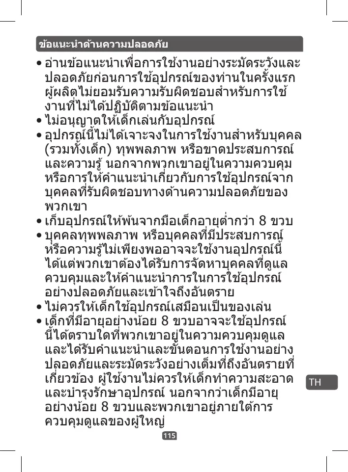 • Conserver l’appareil et son câble hors de portée des enfants âgés de moins de 8 ans. • Cet appareil peut être utilisé par des personnes dont les capacités physiques, sensorielles ou mentales sont réduites ou dont l’expérience ou les connaissances ne sont pas suffisantes, à condition qu’ils bénéficient d’une surveillance ou qu’ils aient reçu des instructions quant à l’utilisation de l’appareil 1