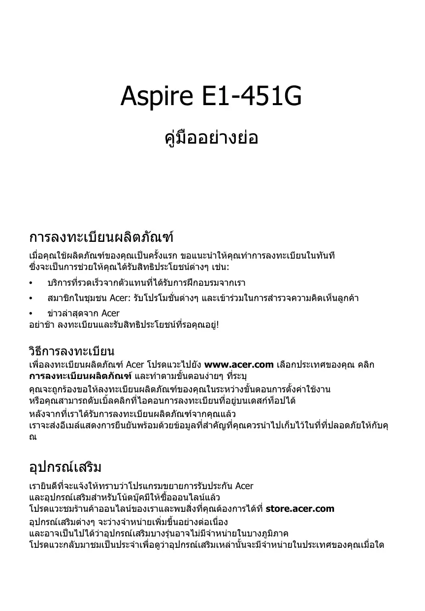 Téléchargez la notice de votre แล็ปท็อป au format PDF gratuitement ! Retrouvez votre notice ASPIRE E1-451G - ACER et reprennez votre appareil électronique en main. Sur cette page sont publiés tous les documents nécessaires à l'utilisation de votre appareil ASPIRE E1-451G de la marque ACER.