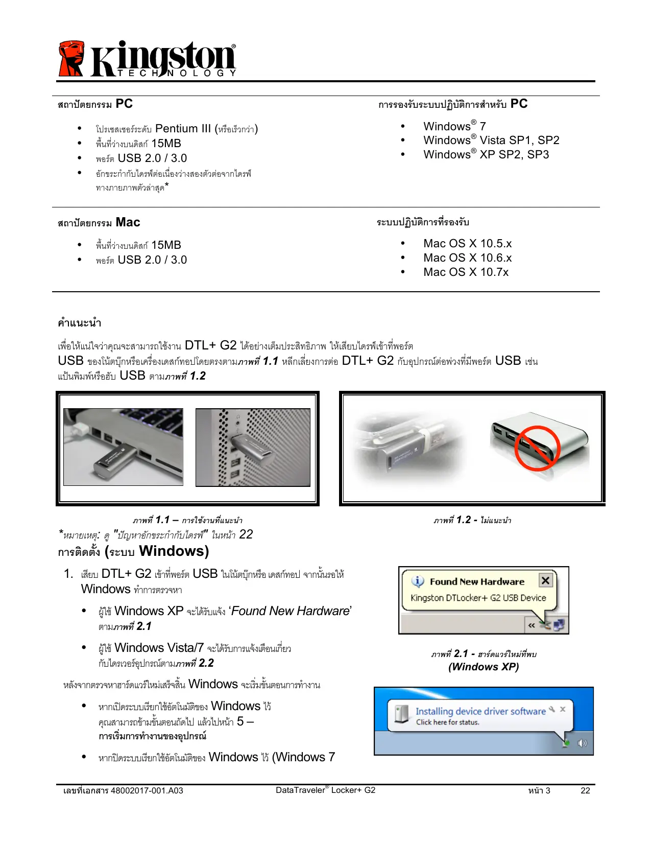 Téléchargez la notice de votre แฟลชไดรฟ์ USB au format PDF gratuitement ! Retrouvez votre notice DATATRAVELER LOCKER G2/DTLPG2 - KINGSTON et reprennez votre appareil électronique en main. Sur cette page sont publiés tous les documents nécessaires à l'utilisation de votre appareil DATATRAVELER LOCKER G2/DTLPG2 de la marque KINGSTON.