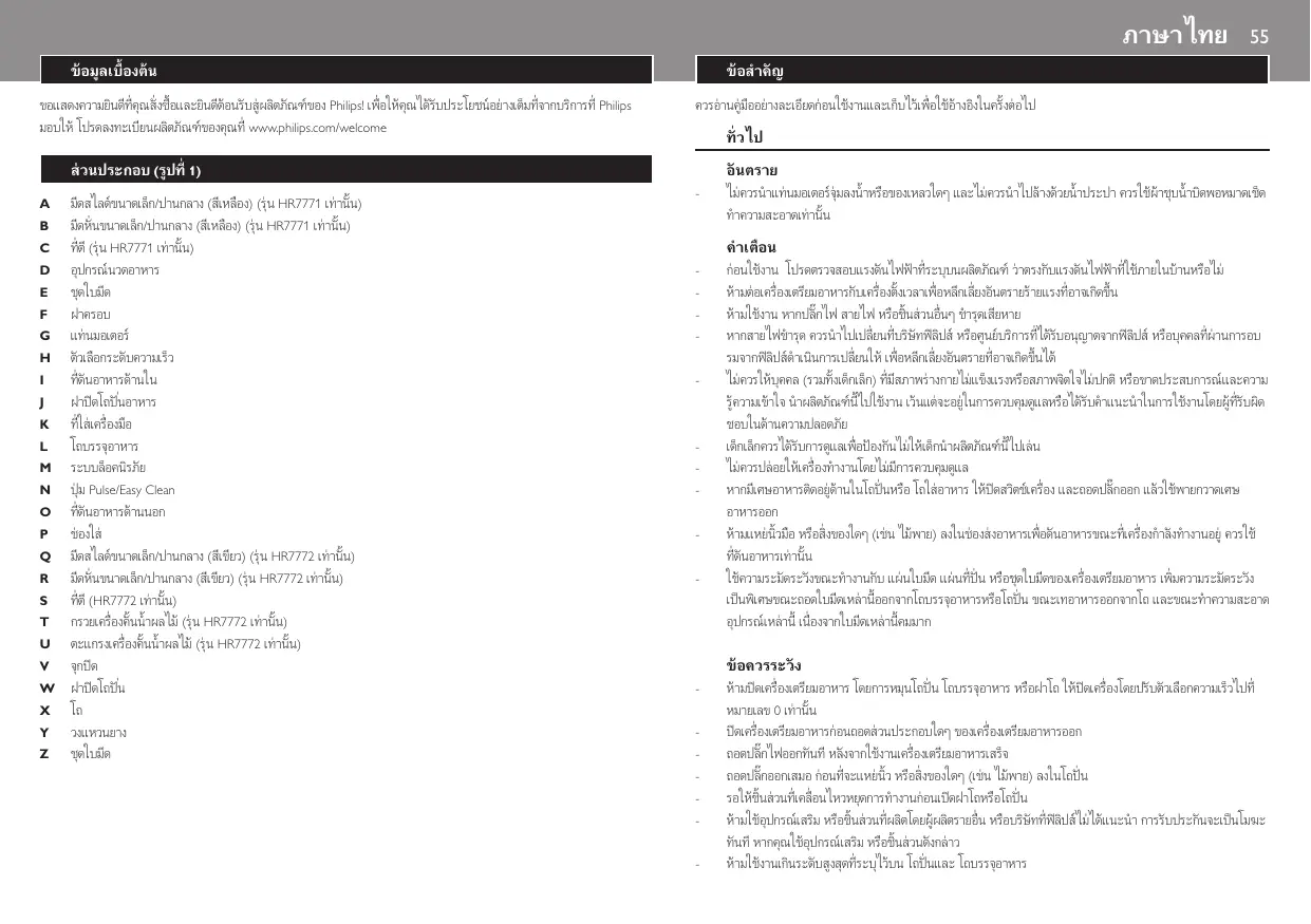 Téléchargez la notice de votre เครื่องทำอาหาร au format PDF gratuitement ! Retrouvez votre notice HR7771/53 - PHILIPS et reprennez votre appareil électronique en main. Sur cette page sont publiés tous les documents nécessaires à l'utilisation de votre appareil HR7771/53 de la marque PHILIPS.