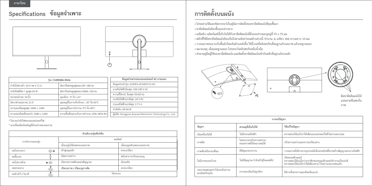 Retrouvez gratuitement la notice de l'appareil G34WQi Xiaomi au format PDF.