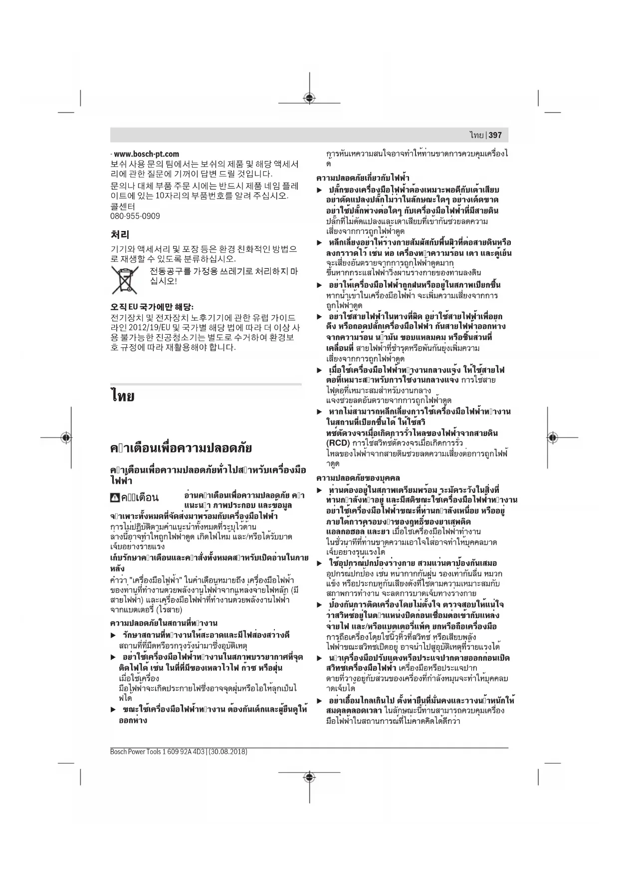 ไทย | 397 Bosch Power Tools 1 609 92A 4D3 | (30.08.2018)398 | ไทย