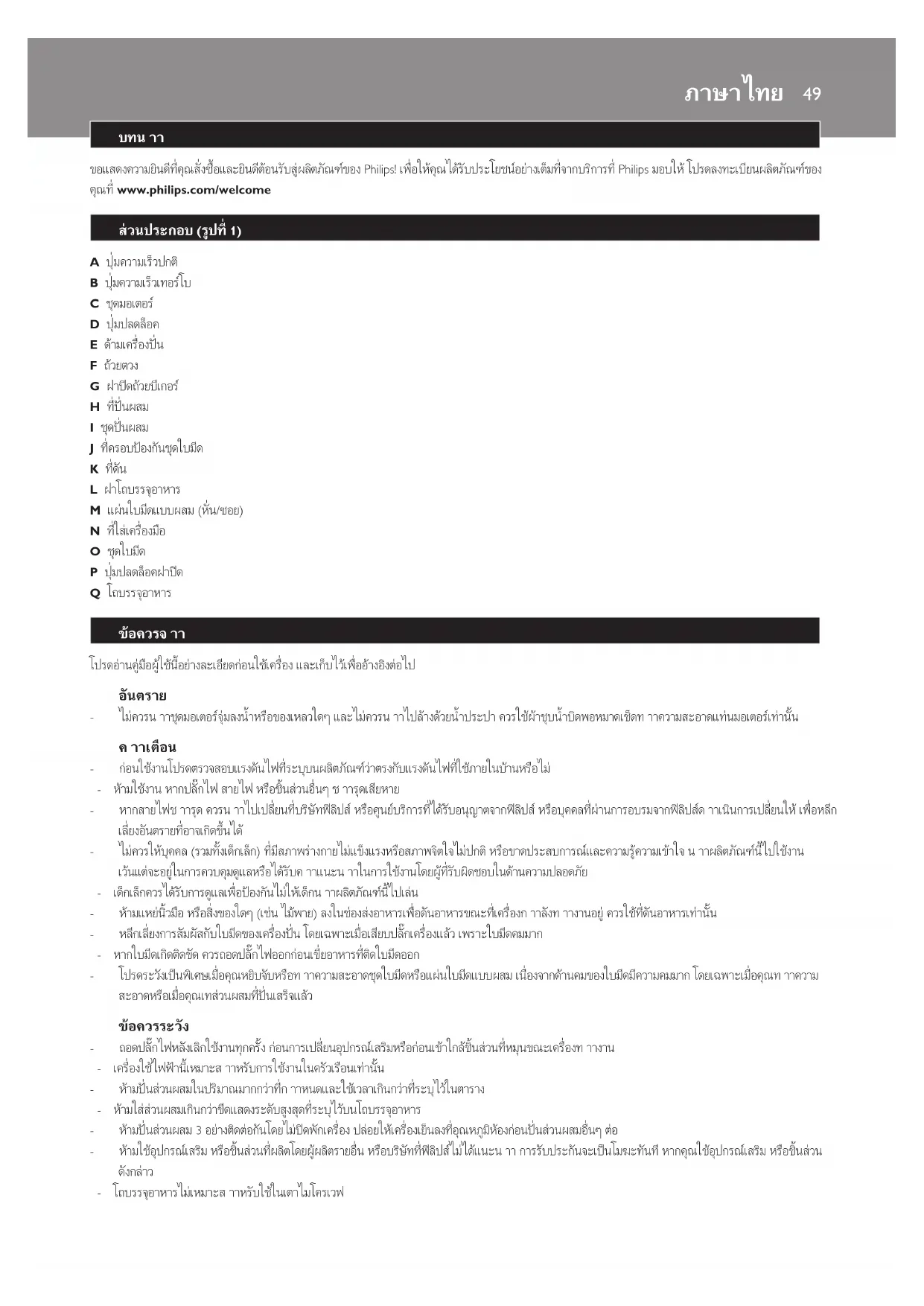 ขอแสดงความยินดีที่คุณสั่งซื้อและยินดีตอนรับสผลิตภัณฑของ Philips! เพื่อใหคุณไดรับประโยชนอยางเต็มที่จากบริการที่ Philips มอบให โปรดลงทะเบียนผลิตภัณฑของ