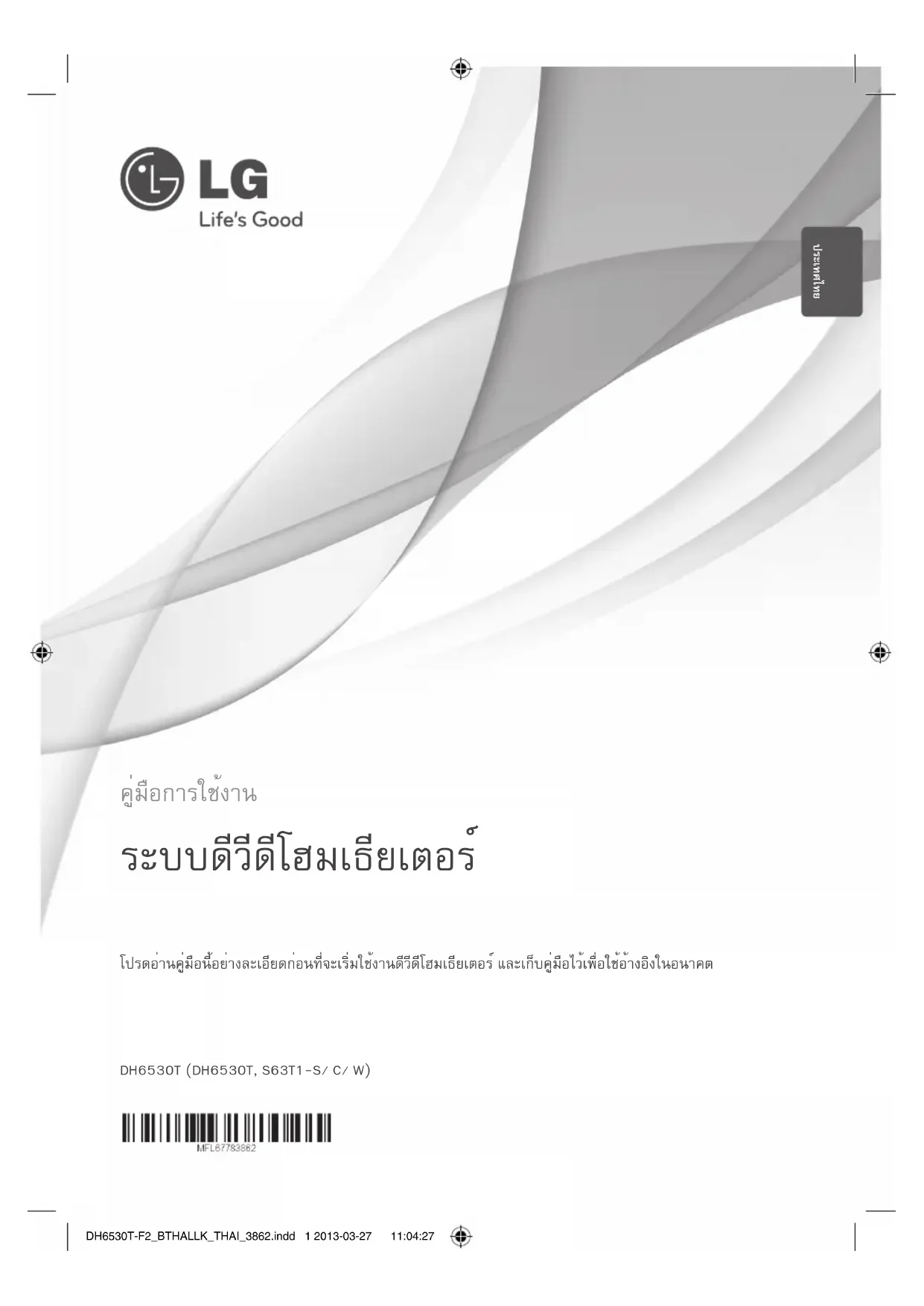 DH6530T (DH6530T, S63T1-S/ C/ W) โปรดอ่านคู่มือนี้อย่างละเอียดก่อนที่จะเริ่มใช้งานดีวีดีโฮมเธียเตอร์ และเก็บคู่มือไว้เพื่อใช้อ้างอิงในอนาคต คู่มือการใช้งาน ระบบดีวีดีโฮมเธียเตอร์
