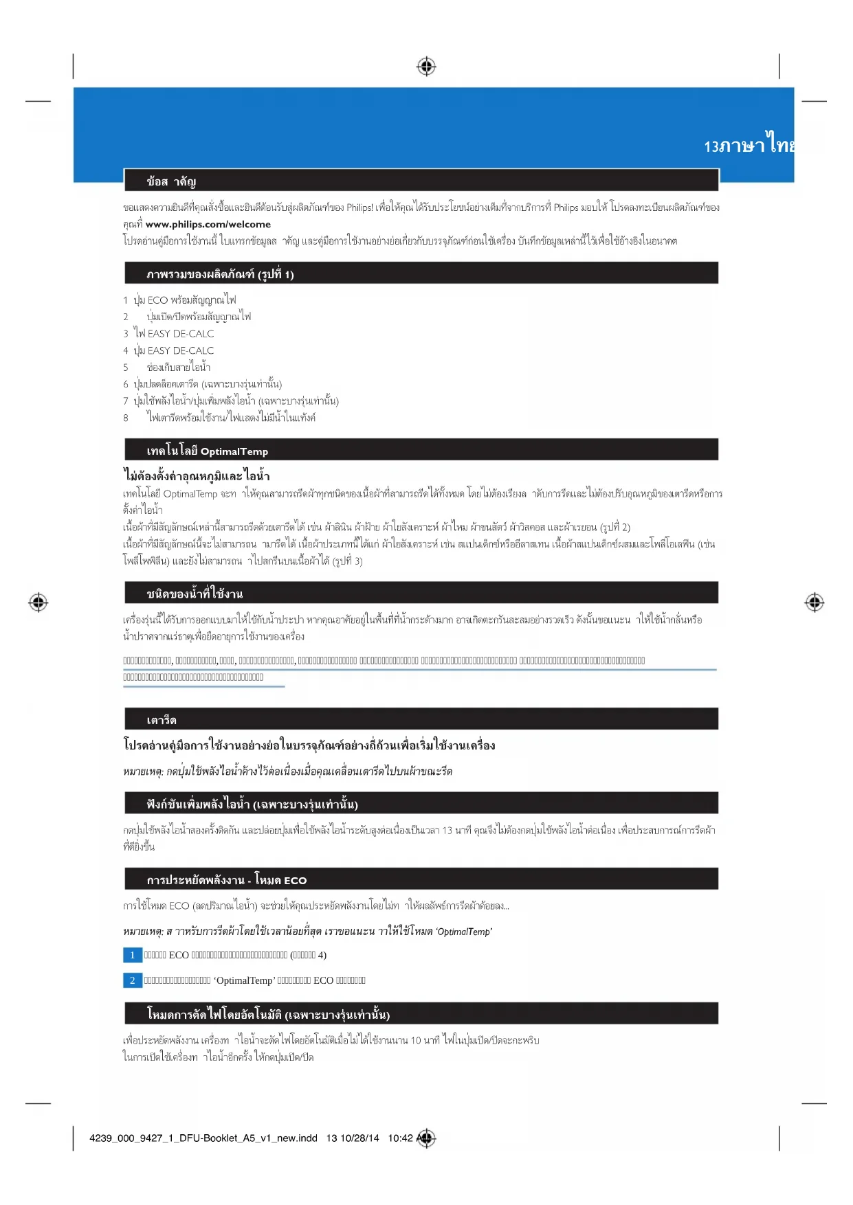 ขอแสดงคว�มยินดีที่คุณสั่งซื้อและยินดีตอนรับสผลิตภัณฑของ Philips! เพื่อใหคุณไดรับประโยชนอย�งเต็มที่จ�กบริก�รที่ Philips มอบให โปรดลงทะเบียนผลิตภัณฑของ