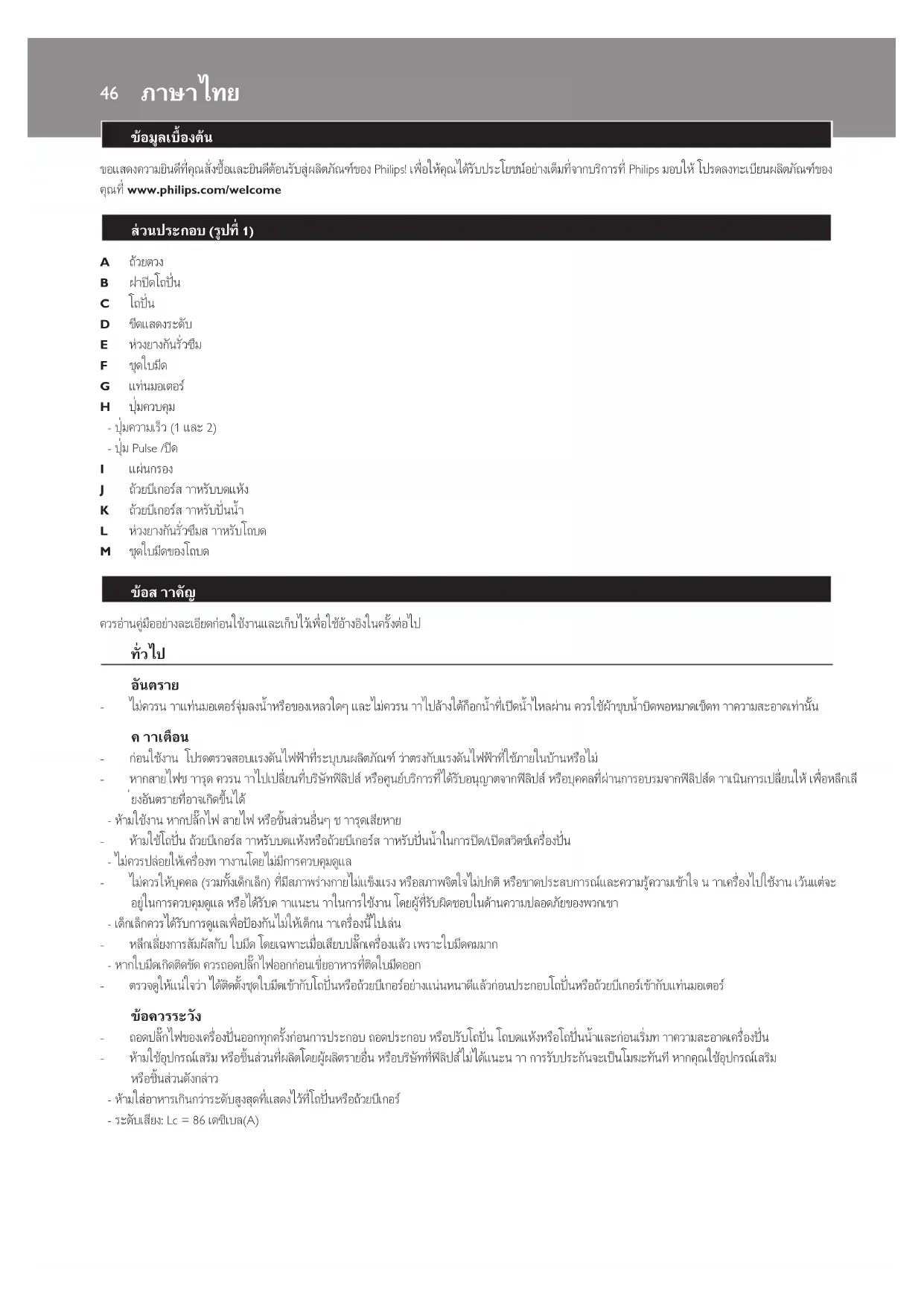 ขอแสดงความยินดีที่คุณสั่งซื้อและยินดีตอนรับสผลิตภัณฑของ Philips! เพื่อใหคุณไดรับประโยชนอยางเต็มที่จากบริการที่ Philips มอบให โปรดลงทะเบียนผลิตภัณฑของ