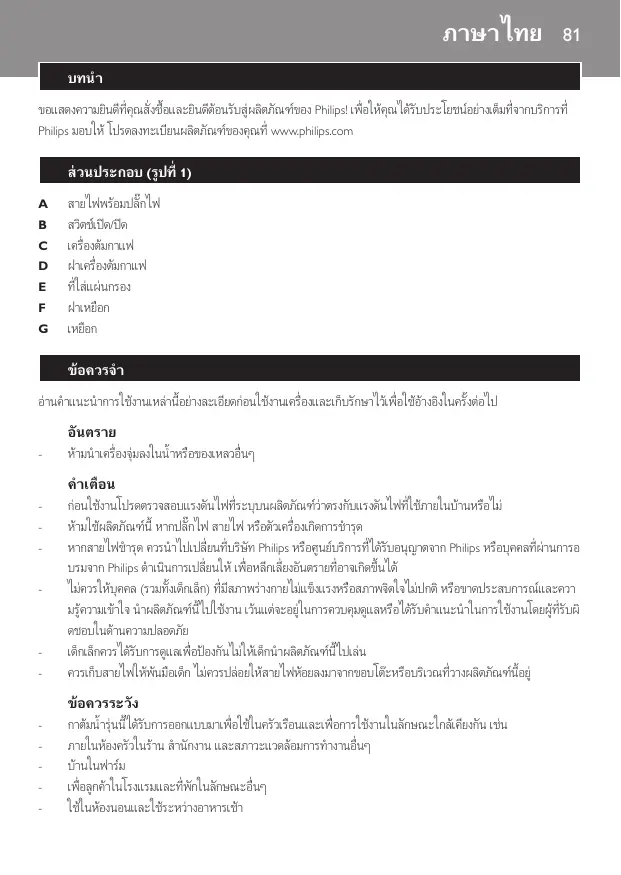 Téléchargez la notice de votre เครื่องชงกาแฟ au format PDF gratuitement ! Retrouvez votre notice HD7980 - PHILIPS et reprennez votre appareil électronique en main. Sur cette page sont publiés tous les documents nécessaires à l'utilisation de votre appareil HD7980 de la marque PHILIPS.