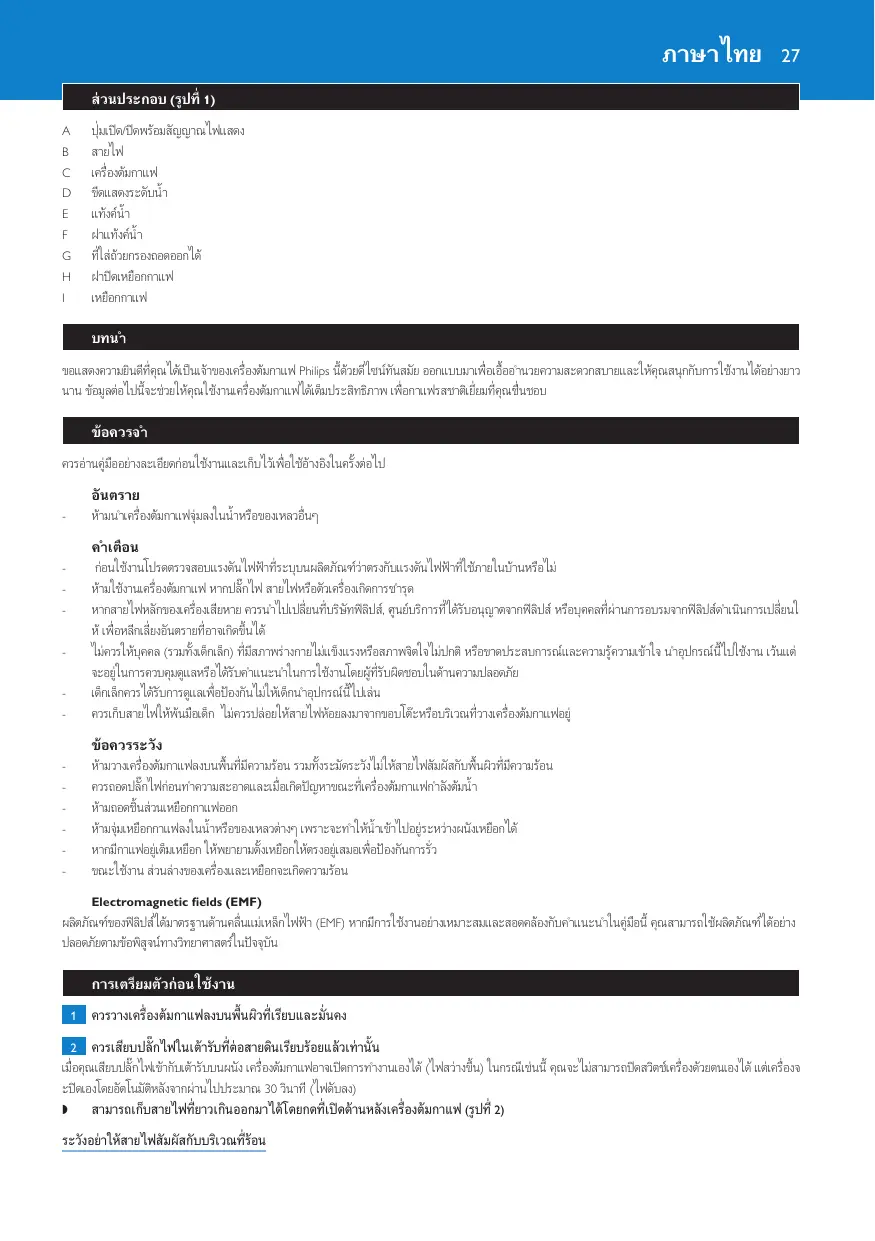 Téléchargez la notice de votre เครื่องชงกาแฟ au format PDF gratuitement ! Retrouvez votre notice HD7546 - PHILIPS et reprennez votre appareil électronique en main. Sur cette page sont publiés tous les documents nécessaires à l'utilisation de votre appareil HD7546 de la marque PHILIPS.
