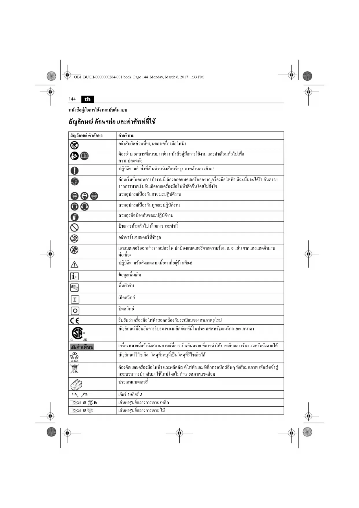 ![]() | ยืนยันว่าเครื่องมือไฟฟ้าสอดคล้องกับระเบียบของสนภาพยุโรป |