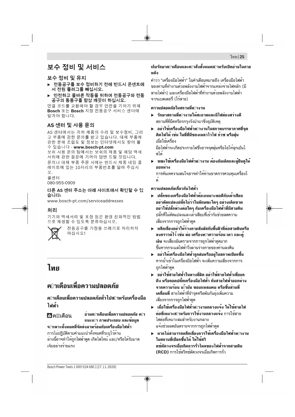 ไทย บริษัท โรเบิร์ต บ๊อช จำกัด เอฟวายไอ เซ็นเตอร์ อาคาร 1 ชั้น 5 เลขที่ 2525 ถนนพระราม 4 แขวงคลองเตย เขตคลองเตย กรุงเทพฯ 10110 โทร: +66 2012 8888 แฟกซ์: +66 2064 5800 www.bosch.co.th ศูนย์บริการซ่อมและฝึกอบรม บ๊อช อาคาร ลาซาลทาวเวอร์ ชั้น G ห้องเลขที่ 2 บ้านเลขที่ 10/11 หมู่ 16 ถนนศรีนครินทร์ ตำบลบางแก้ว อำเภอบางพลี จังหวัดสมุทรปราการ 10540