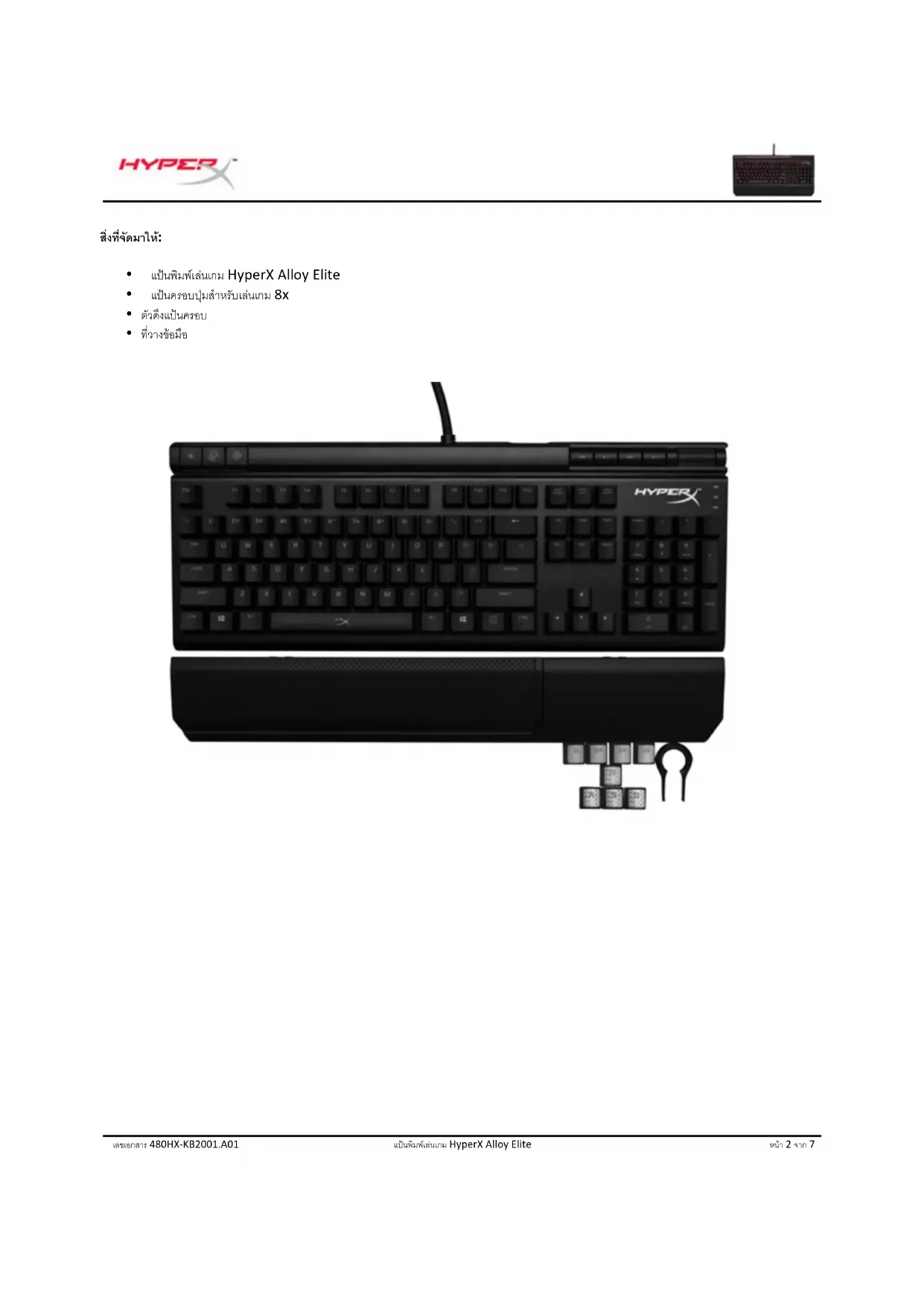 !!เลขเอกสาร!480HX-KB2001.A01! แป#นพิมพ(เล #นเกม!HyperX!Alloy!Elite! หน#า!2!จาก!7!
