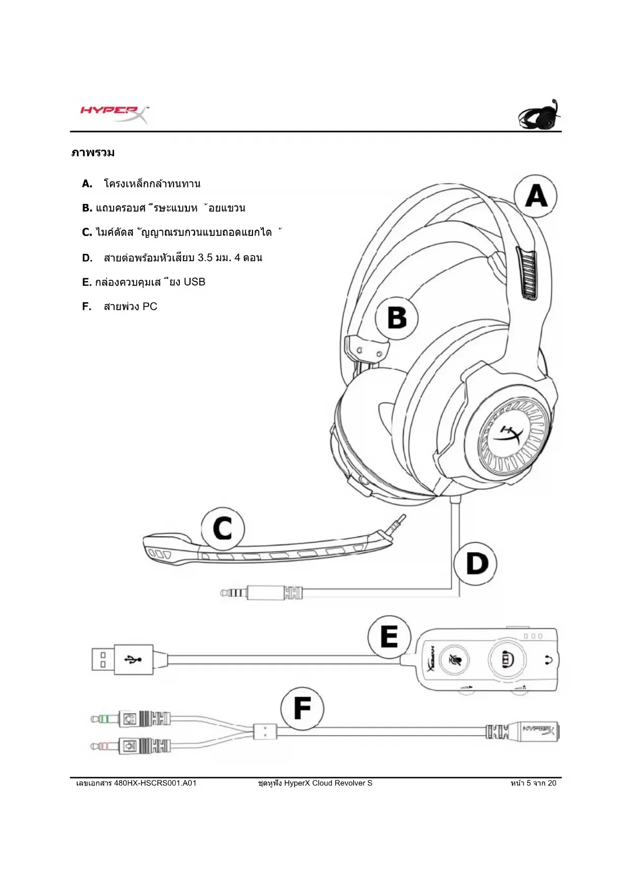 ยง USB F. สายพ่วง PC 480HX-HSCRS001.A01 HyperX Cloud Revolver S 6 20 การทํางานของกล่องควบคุมเสียง USB USB