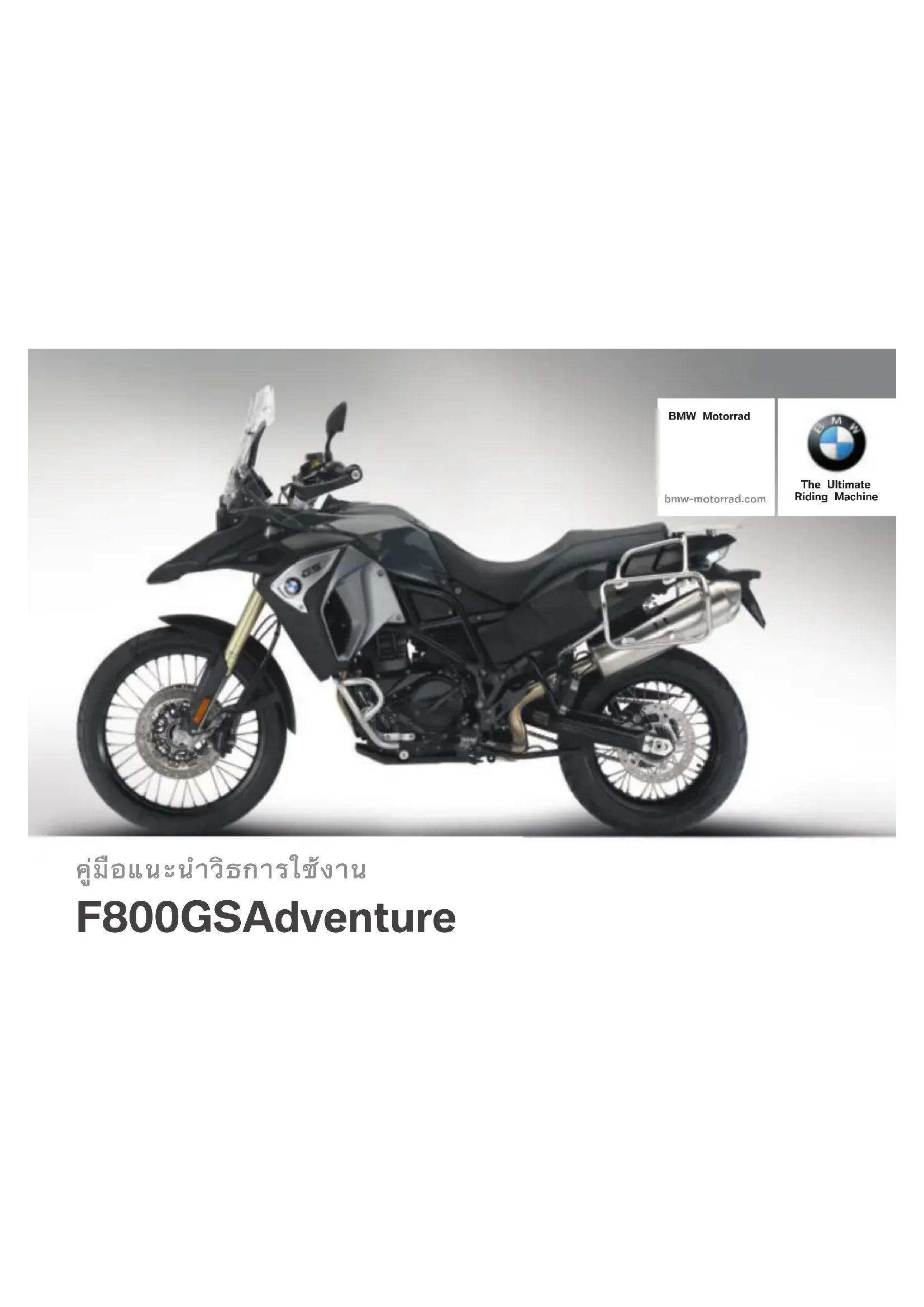 คูมือแนะนําวิธีการใชงาน F800GSAdventure BMW Motorrad bmw‑motorrad.com The Ultimate Riding Machineขอมลรถจักรยานยนตและขอมูลตัวแทนจําหนาย ขอมูลรถจักรยานยนต