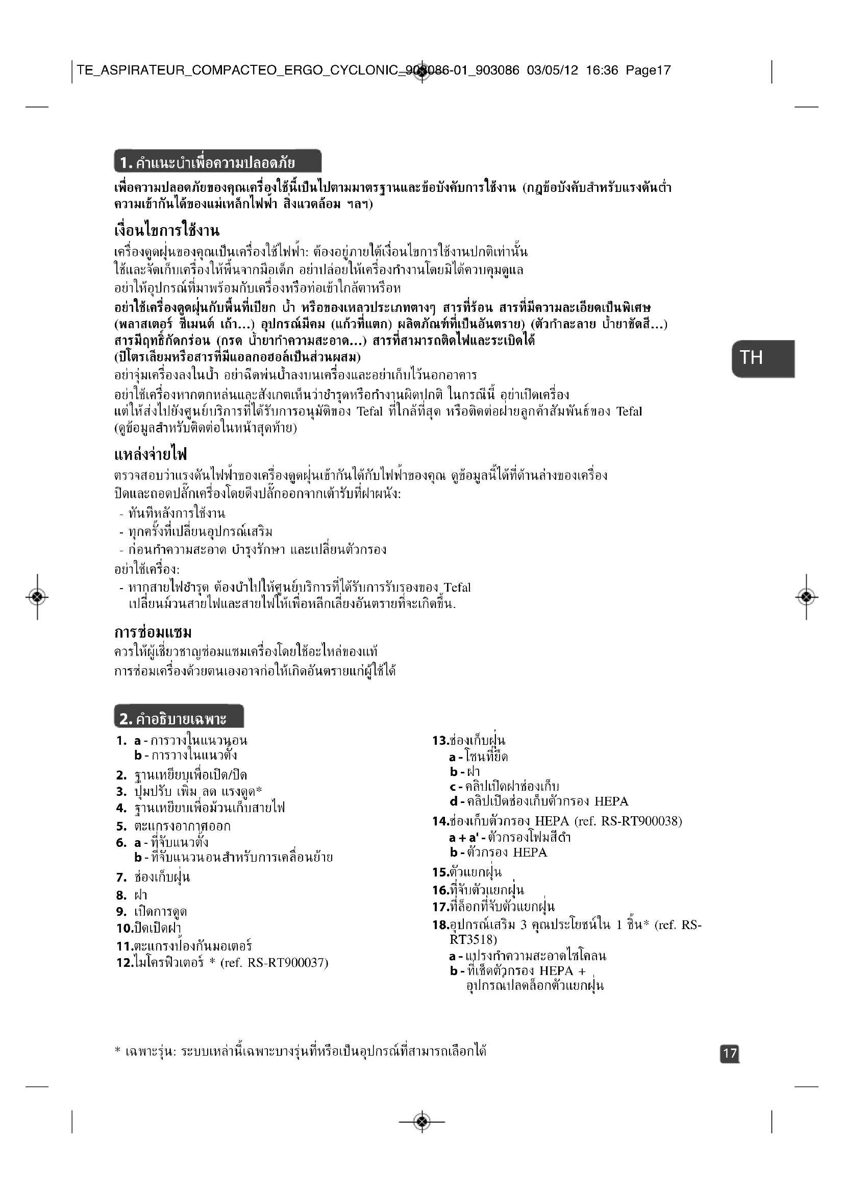 - เฉพาะรุน: ระบบเหลานี้เฉพาะบางรุนที่หรือเป็นอุปกรณที่สามารถเลือกได TE_ASPIRATEUR_COMPACTEO_ERGO_CYCLONIC_903086-01_903086 03/05/12 16:36 Page2223