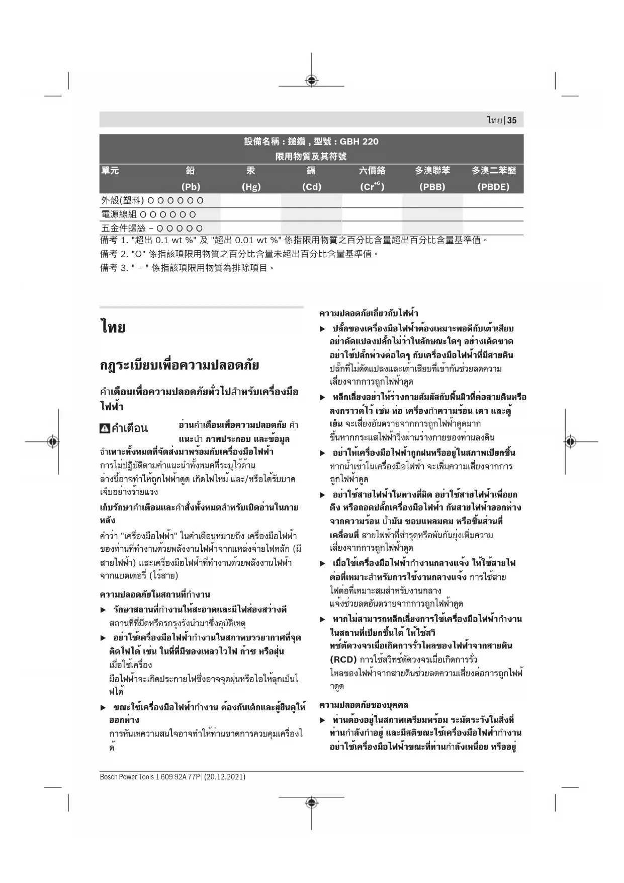 GBH 220 Professional - ค้อน BOSCH - คู่มือผู้ใช้ฟรี