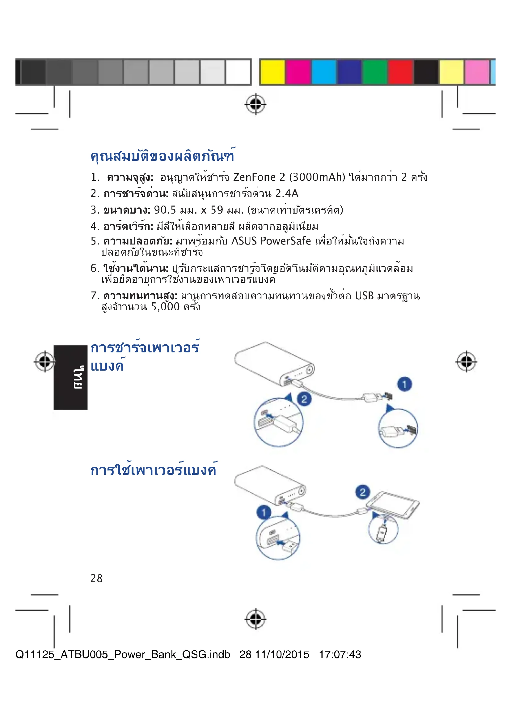 การใช้เพาเวอร์แบงค์ Q11125_ATBU005_Power_Bank_QSG.indb 28 11/10/2015 17:07:4329
