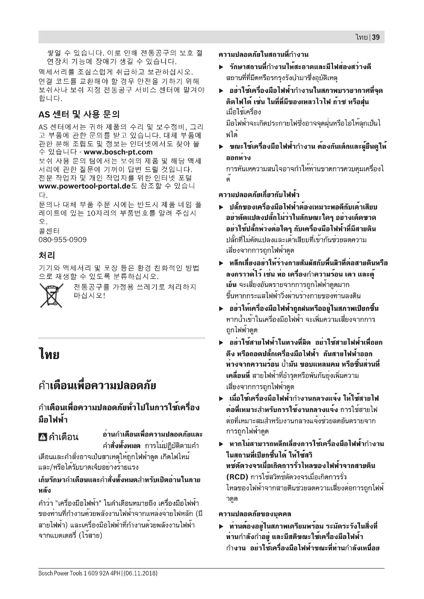 ศูนย์บริการหลังการขายของเรายินดีตอบคำถามของ ท่านที่เกี่ยวกับการบำรุงรักษาและการซ่อมแซมผลิตภัณฑ์รวม ทั้งเรื่องอะไหล่ ภาพแยกชิ้นและข้อมูลเกี่ยวกับอะไหล่ยัง สามารถดูได้ใน: www.bosch-pt.com ทีมงานที่ปรึกษาของ บ๊อช ยินดีให้ข้อมูลเกี่ยวกับผลิตภัณฑ์ ของเราและอุปกรณ์ประกอบต่างๆ www.powertool-portal.de เว็บพอร์ทัลสำหรับช่าง ฝีมือและช่างสมัครเล่น เมื่อต้องการสอบถามและสั่งซื้ออะไหล่ กรุณาแจ้งหมายเลข สินค้า 10 หลักบนแผ่นป้ายรุ่นของผลิตภัณฑ์ทุกครั้ง