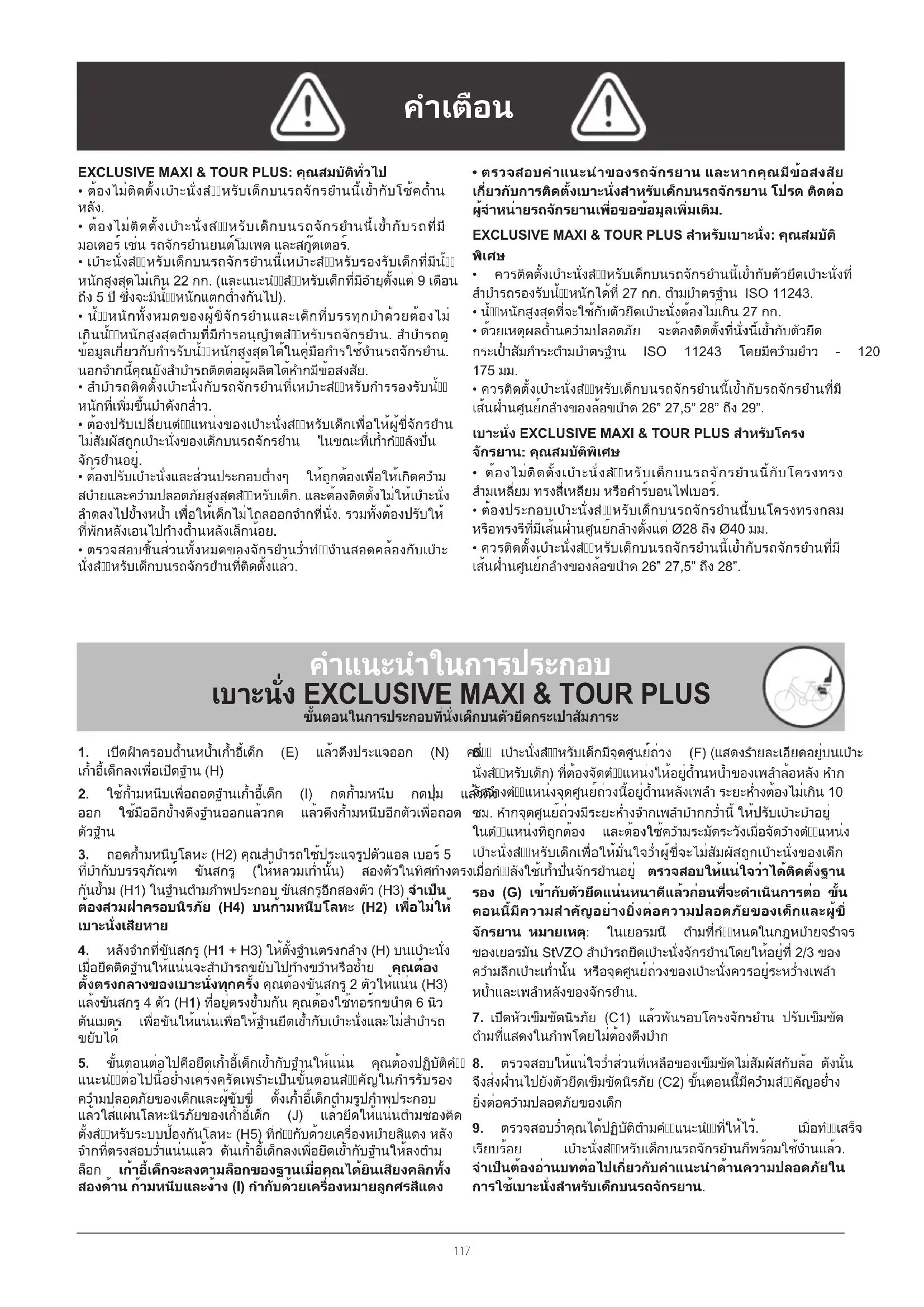 - น้ำหนักสูงสุดที่จะใช้กับตัวยึดเบำะนั่งต้องไม่เกิน27กก.
