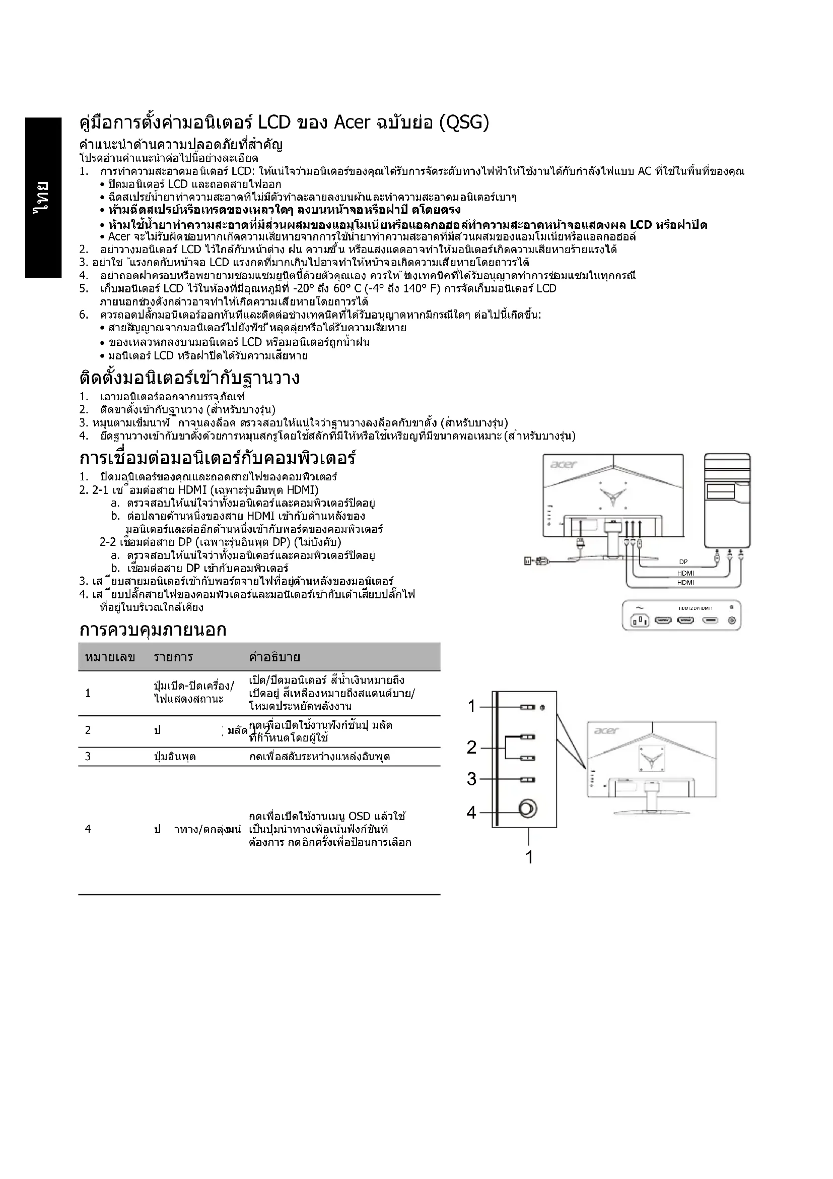- Acer จะไม่รับผิดชอบหากเกิดความเส