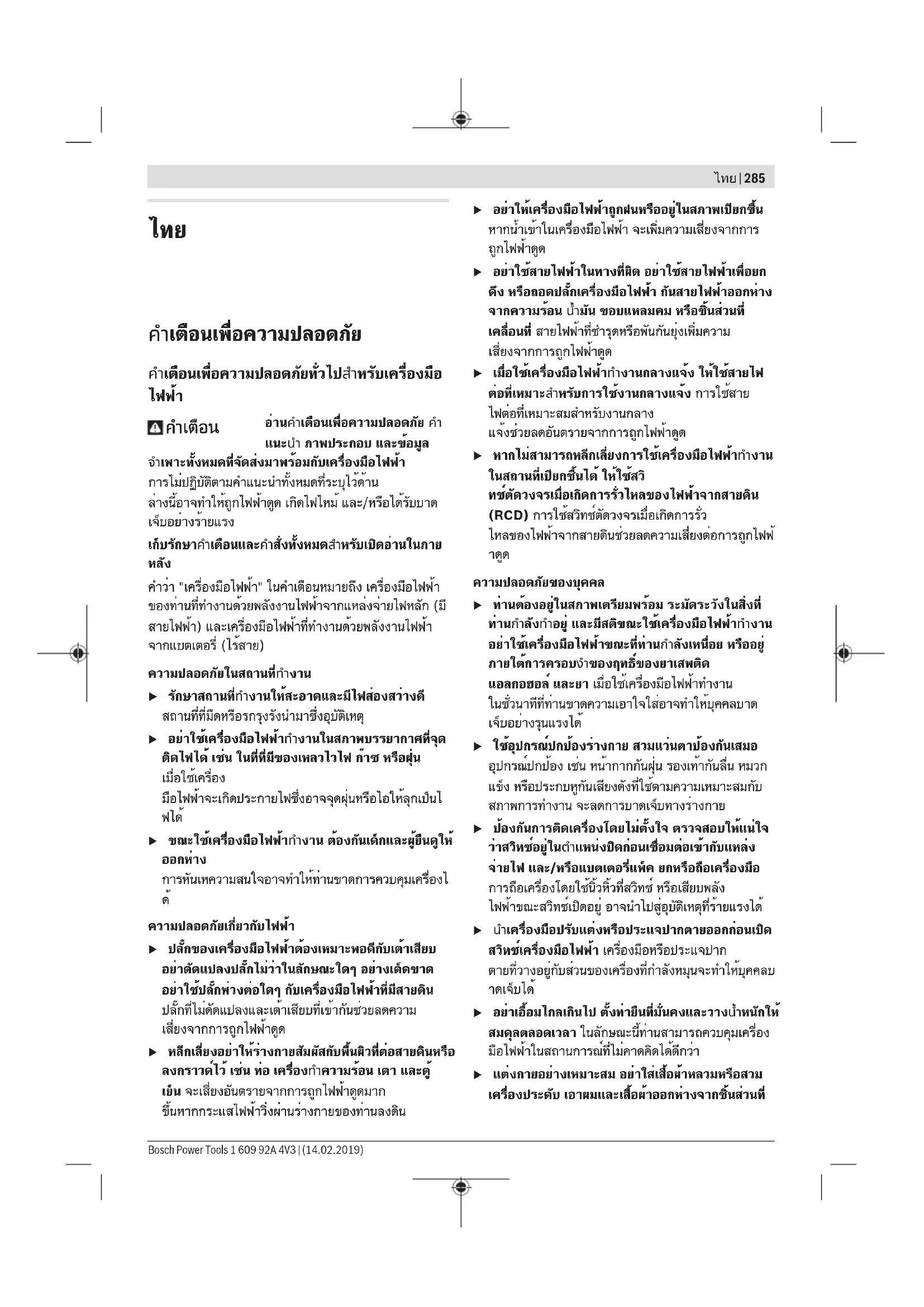 Bosch Power Tools 1 609 92A 4V3 | (14.02.2019)288 | ไทย รายละเอียดผลิตภัณฑ์และข้อมูล