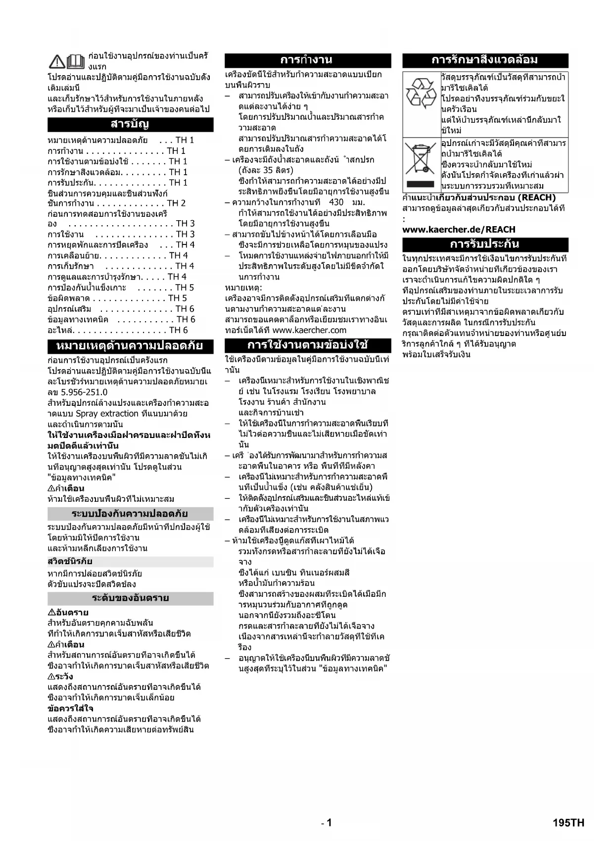 สามารถขอแคตตาล็อกหรือเยี่ยมชมเราทางอินเ ทอร์เน็ตได้ที่ www.kaercher.com ใช้เครื่องนี้ตามข้อมูลในคู่มือการใช้งานฉบับนี้เท่