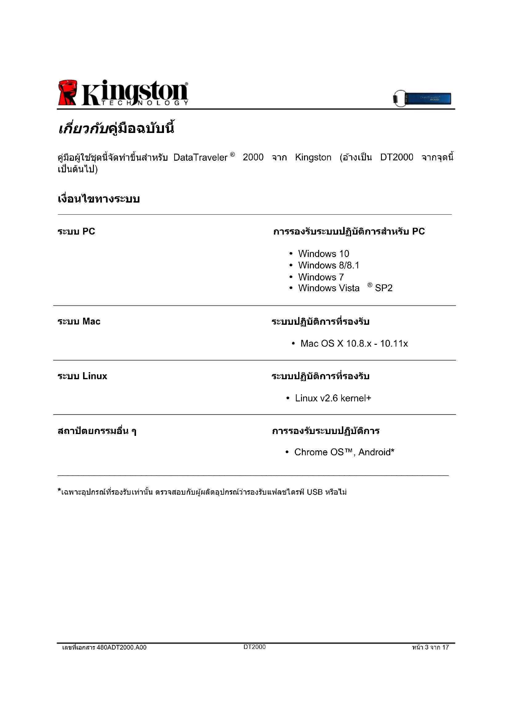 DataTraveler 2000 - แฟลชไดรฟ์ USB KINGSTON - คู่มือผู้ใช้ฟรี