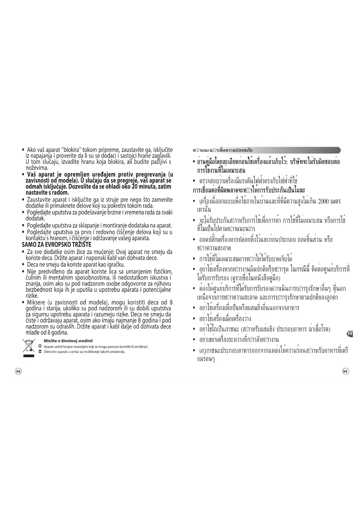 - อย่าใช้โถเป็นภาชนะ (สำาหรับแช่แข็ง ประกอบอาหาร ฆ่าเชื้อโรค)