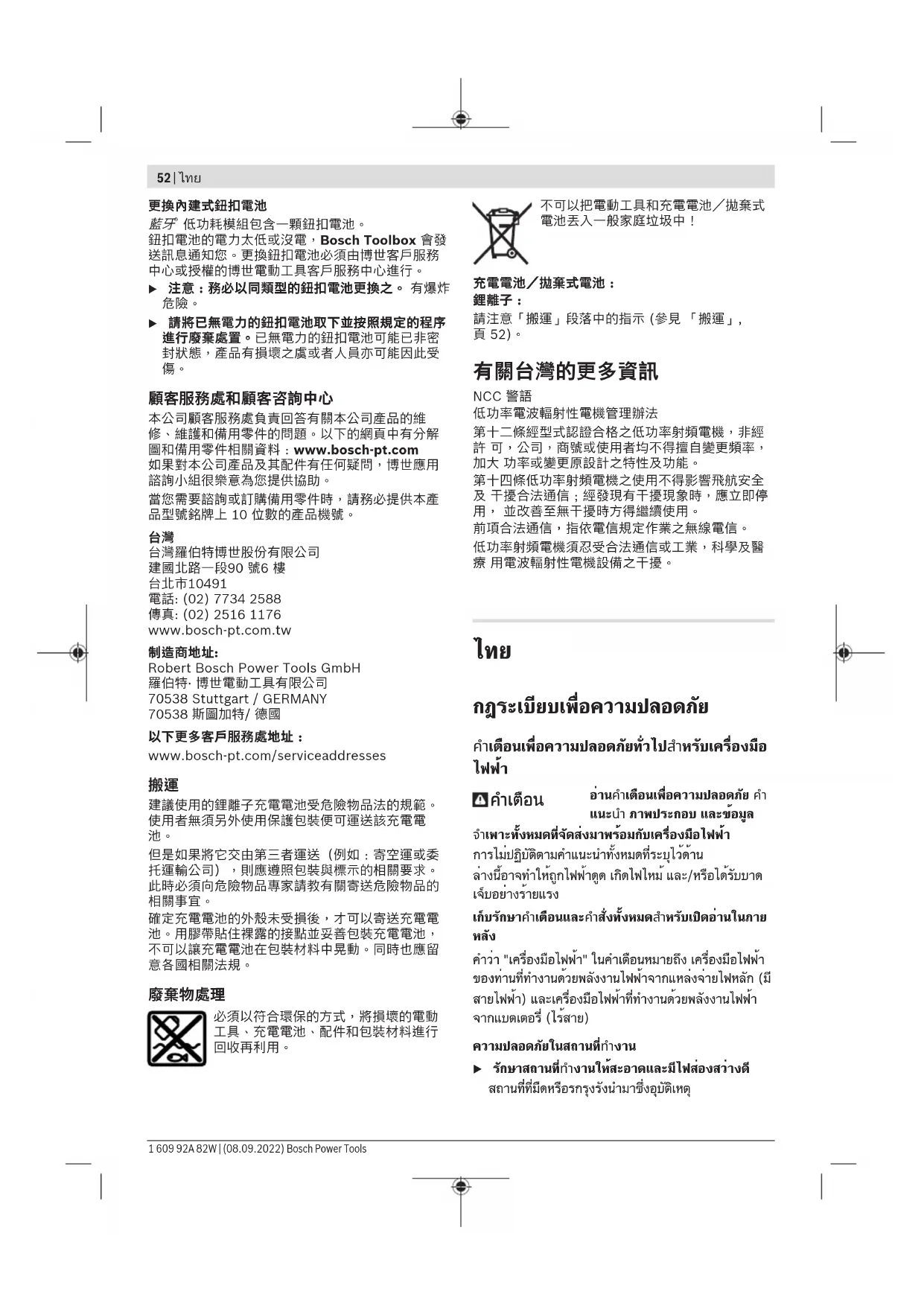 โทรศัพท์ 02 7587555 โทรสาร 02 7587525 สามารถดูที่อยู่ศูนย์บริการอื่นๆ ได้ที่: www.bosch-pt.com/serviceaddresses