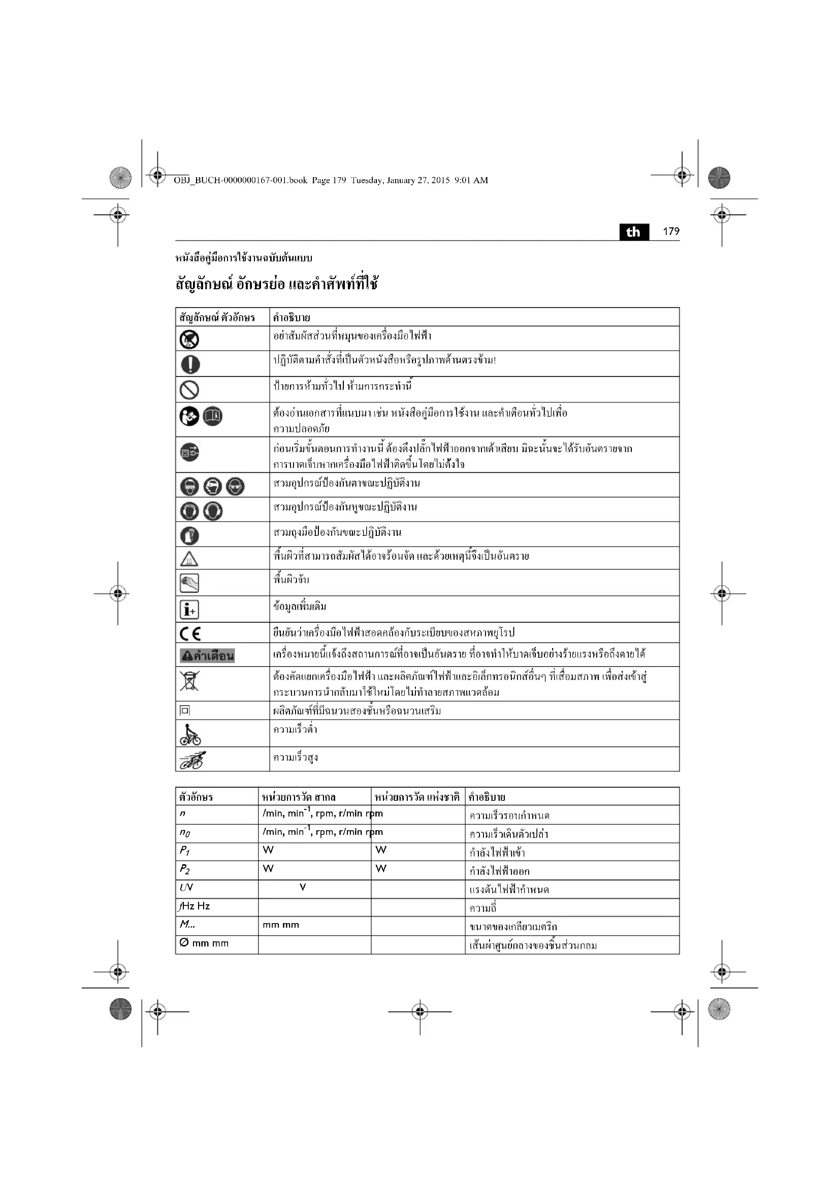 ตัวอักษร หนวยการวัด สากล หนวยการวัด แหงชาติ คําอธิบาย OBJ_BUCH-0000000167-001.book Page 180 Tuesday, January 27, 2015 9:01 AM181