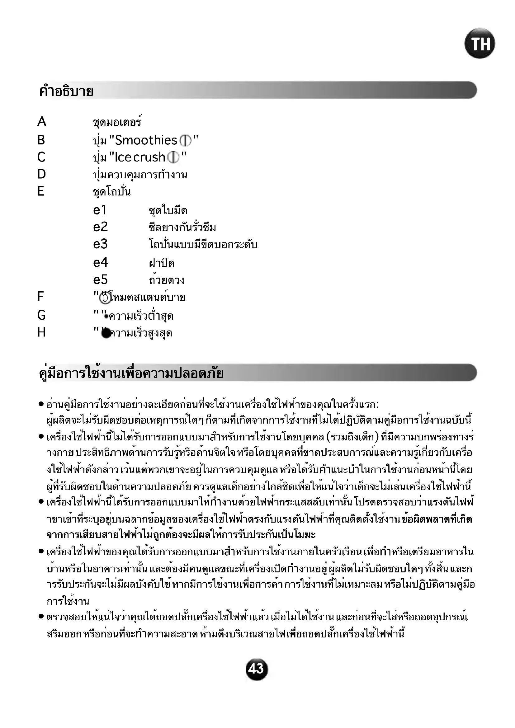 - ห้ามใช้เครื่องปั่นนี้สำหรับการปั่นหรือผสมสิ่งอื่น ๆ นอกเหนือจากส่วนผสมจำพวกอาหาร