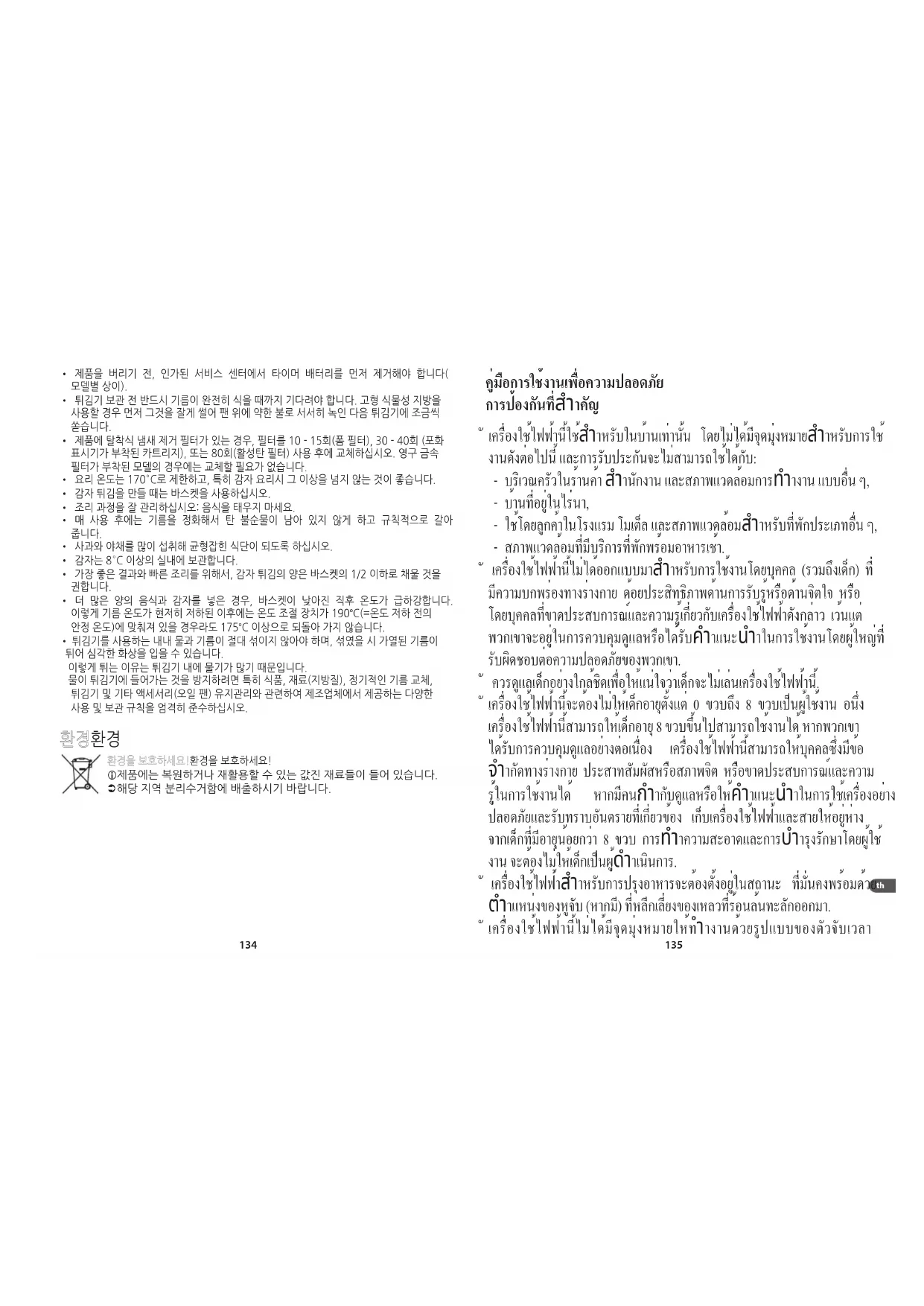 해당 지역 분리수거함에 배출하시기 바랍니다. คู่มือการใช้งานเพื่อความปลอดภัย การป้องกันที่สำาคัญ
