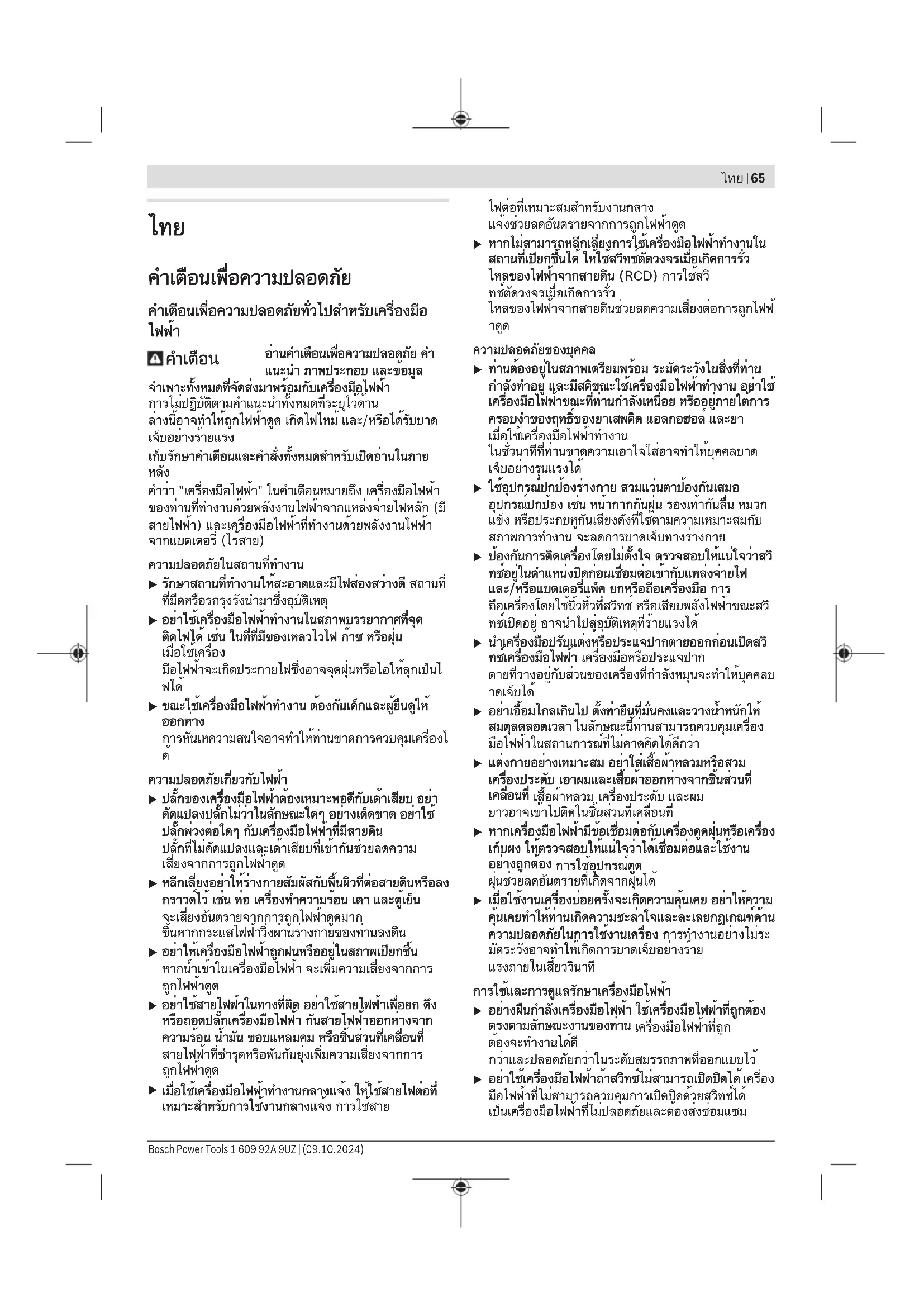 มือไฟฟ้าที่ไม่สามารถควบคุมการเปิดปิดด้วยสวิทช์ได้ เป็นเครื่องมือไฟฟ้าที่ไม่ปลอดภัยและต้องส่งซ่อมแซม Bosch Power Tools 1 609 92A 9UZ | (09.10.2024)66 | ไทย