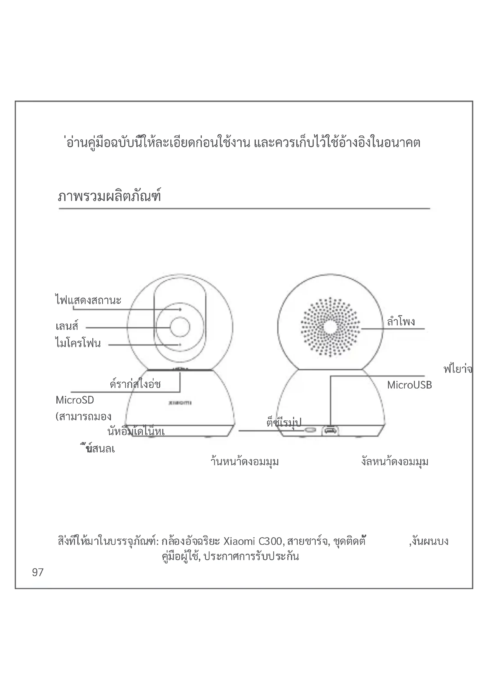 ่อ่านคู่มือฉบับนี้ให้ละเอียดก่อนใช้งาน และควรเก็บไว้ใช้อ้างอิงในอนาคต ด์ราก่สใงอ่ช MicroSD