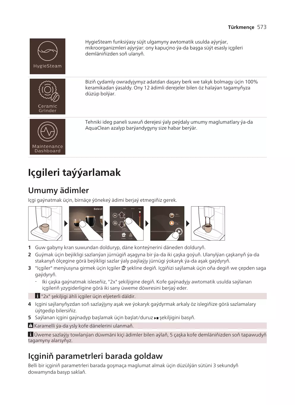 Fonction spéciale Le tableau de bord de maintenance vous donne une vue d’ensemble utile et vous informe de l’état de votre niveau d’eau ou vous signale que le filtre AquaClean est presque épuisé, par exemple.