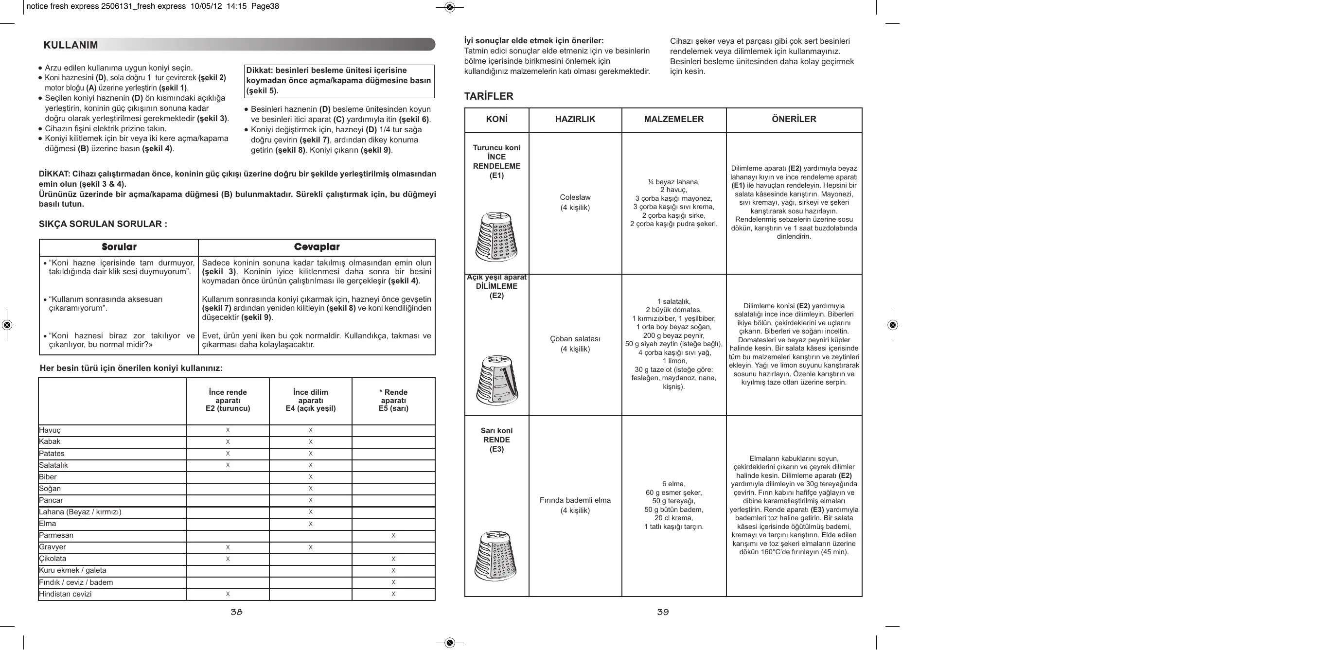 Ne pas utiliser l’appareil pour râper ou trancher des
