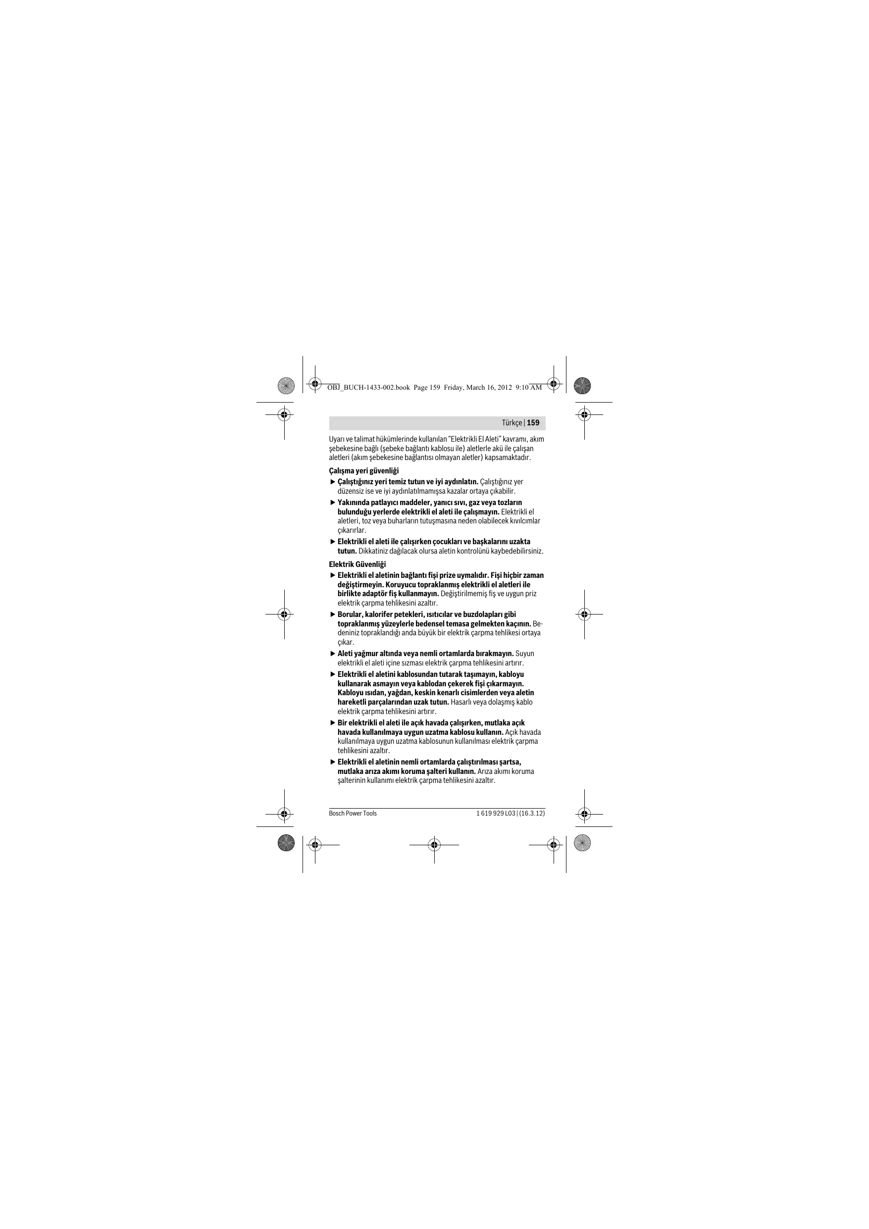 Denizli Tel.: 0258 262 06 66 Bulut Elektrik İstasyon Cad. No: 52/B Devlet Tiyatrosu Karşs Elazğ Tel.: 0424 218 35 59 Körfez Elektrik Sanayi Çarşs 770 Sok. No: 71 Erzincan Tel.: 0446 223 09 59 Ege Elektrik İnönü Bulvaro No: 135 Muğla Makasaras Fethiye Fethiye Tel.: 0252 614 57 01 Değer İş Bobinaj İsmetpaşa Mah. İlk Belediye Başkan Cad. 5/C Şahinbey Gaziantep Tel.: 0342 231 64 32 Çözüm Bobinaj İsmetpaşa Mah. Eski Şahinbey Belediyesi alt Cad. No: 3/C Gaziantep Tel.: 0342 231 95 00 Onarm Bobinaj Raifpaşa Cad. No: 67 İskenderun Hatay Tel.: 0326 613 75 46 Günşah Otomotiv Beylikdüzü Sanayi Sit. No: 210 Beylikdüzü İstanbul Tel.: 0212 872 00 66 Aygem 10021 Sok. No: 11 AOSB Çiğli İzmir Tel.: 0232 376 80 74 1 619 929 L03 | (16.3.12) Bosch Power Tools OBJ_BUCH-1433-002.book Page 171 Friday, March 16, 2012 9:10 AM Türkçe | 171 Sezmen Bobinaj Ege İş Merkezi 1201/4 Sok. No: 4/B Yenişehir İzmir Tel.: 0232 457 14 65 Ankaral Elektrik Eski Sanayi Bölgesi 3. Cad. No: 43 Kayseri Tel.: 0352 336 42 16 Asal Bobinaj Eski Sanayi Sitesi Barbaros Cad. No: 24 Samsun Tel.: 0362 228 90 90 Üstündağ Elektrikli Aletler Nusretiye Mah. Boyaclar Aralğ No: 9 Tekirdağ Tel.: 0282 651 28 84 Nakliye Alet içindeki lityum iyon (Li-Ionen) aküler tehlikeli madde taşma yönetmeliği hükümlerine tabidir. Aküler başka bir yükümlülük olmakszn kullanc tarafndan caddeler üzerinde taşnabilir. Üçüncü kişiler eliyle yollanma durumunda (örneğin hava yolu ile veya nakliye şirketleri ile) paketleme ve etiketlemeye ilişkin özel hükümlere uyulmaldr. Bu nedenle gönderi paketlenirken bir tehlikeli madde uzmanndan yardm alnmaldr. Aküleri sadece ve ancak gövdelerinde hasar yoksa gönderin. Açk kontaklar kapatn ve aküyü ambalaj içinde hareket etmeyecek biçimde paketleyin. Lütfen olas ek ulusal yönetmelik hükümlerine de uyun. Bosch Power Tools 1 619 929 L03 | (16.3.12) OBJ_BUCH-1433-002.book Page 172 Friday, March 16, 2012 9:10 AM 172 | Türkçe Tasfiye Elektrikli el aletleri, aküler, aksesuar ve ambalaj malzemesi çevre dostu yeniden kazanm merkezine gönderilmek zorundadr. Elektrikli el aletlerini ve aküleri/bataryalar evsel çöplerin içine atmayn! Sadece AB üyesi ülkeler için: 2002/96/AT yönetmeliği uyarnca kullanm ömrünü tamamlamş elektrikli el aletleri ve 2006/66/AT yönetmeliği uyarnca arzal veya kullanm ömrünü tamamlamş aküler/bataryalar ayr ayr toplanmak ve çevre dostu tasfiye için bir geri dönüşüm merkezine gönderilmek zorundadr. Aküler/Bataryalar: Li-Ion: Lütfen bölüm “Nakliye”, sayfa içindeki uyarlara uyun 171. Değişiklik haklarmz sakldr. 1 619 929 L03 | (16.3.12) Bosch Power Tools | 173ﻋﺮﺑﻲ ﺍﻟﺘﺨﻠﺺ ﻣﻦ ﺍﻟﻌﺪﺓ ﺍﻟﻜﻬﺮﺑﺎﺋﻴﺔ ﳚﺐ ﺍﻟﺘﺨﻠﺺ ﻣﻦ ﺍﻟﻌﺪﺓ ﺍﻟﻜﻬﺮﺑﺎﺋﻴﺔ ﻭﺍﳌﺮﻛﻢ ﻭﺍﻟﺘﻮﺍﺑﻊ ﻭﺍﻟﺘﻐﻠﻴﻒ ﺑﻄﺮﻳﻘﺔ ﻣﻨﺼﻔﺔ ﺑﺎﻟﺒﻴﺌﺔ ﻋﻦ ﻃﺮﻳﻖ ﺍﻟﻨﻔﺎﻳﺎﺕ ﺍﻟﻘﺎﺑﻠﺔ ﻹﻋﺎﺩﺓ ﺍﻟﺘﺼﻨﻴﻊ. ﻻ ﺗﺮﻡ ﺍﻟﻌﺪﺩ ﺍﻟﻜﻬﺮﺑﺎﺋﻴﺔ ﻭﺍﳌﺮﺍﻛﻢ/ﺍﻟﺒﻄﺎﺭﻳﺎﺕ ﰲ ﺍﻟﻨﻔﺎﻳﺎﺕ ﺍﳌﻨﺰﻟﻴﺔ! ﻟﺪﻭﻝ ﺍﻻﲢﺎﺩ ﺍﻷﻭﺭﻭﰊ ﻓﻘﻂ: ﺣﺴﺐ ﺍﻟﺘﻮﺟﻴﻪ ﺍﻷﻭﺭﻭﰊ 2002/96/EGﳚﺐ ﺃﻥ ﻳﺘﻢ ﲨﻊ ﺍﻟﻌﺪﺩ ﺍﻟﻜﻬﺮﺑﺎﺋﻴﺔ ﺍﻟﻐﲑ ﺻﺎﳊﺔ ﻟﻼﺳﺘﻌﲈﻝ ،ﻭﺣﺴﺐ ﺍﻟﺘﻮﺟﻴﻪ ﺍﻷﻭﺭﻭﰊ 2006/66/EGﳚﺐ ﺃﻥ ﻳﺘﻢ ﲨﻊ ﺍﳌﺮﺍﻛﻢ/ﺍﻟﺒﻄﺎﺭﻳﺎﺕ ﺍﻟﺘﺎﻟﻔﺔ ﺃﻭ ﺍﳌﺴﺘﻬﻠﻜﺔ ﻋﻠﯽ ﺍﻧﻔﺮﺍﺩ ﻟﻴﺘﻢ ﺍﻟﺘﺨﻠﺺ ﻣﻨﻬﺎ ﺑﻄﺮﻳﻘﺔ ﻣﻨﺼﻔﺔ ﺑﺎﻟﺒﻴﺌﺔ ﻋﻦ ﻃﺮﻳﻖ ﺍﻟﺘﺪﻭﻳﺮ. ﺍﳌﺮﺍﻛﻢ/ﺍﻟﺒﻄﺎﺭﻳﺎﺕ: ﺇﻳﻮﻧﺎﺕ ﺍﻟﻠﻴﺜﻴﻮﻡ: ﻳﺮﺟﯽ ﻣﺮﺍﻋﺎﺓ ﺍﳌﻼﺣﻈﺎﺕ ﰲ ﻓﻘﺮﺓ ”ﺍﻟﻨﻘﻞ“ ،ﺍﻟﺼﻔﺤﺔ .174 ﻧﺤﺘﻔﻆ ﺑﺤﻖ ﺇﺩﺧﺎﻝ ﺍﻟﺘﻌﺪﻳﻼﺕ. )1 619 929 L03 | (16.3.12 Bosch Power Tools ﺍﻟﺼﻴﺎﻧﺔ ﻭﺍﳋﺪﻣﺔ ﻋﺮﺑﻲ | 174 ﺍﻟﺼﻴﺎﻧﺔ ﻭﺍﻟﺘﻨﻈﻴﻒ ◀ ﺣﺎﻓﻆ ﻋﻠﯽ ﻧﻈﺎﻓﺔ ﺍﻟﻌﺪﺓ ﺍﻟﻜﻬﺮﺑﺎﺋﻴﺔ ﻟﻠﻌﻤﻞ ﺑﺸﻜﻞ ﺟﻴﺪ ﻭﺁﻣﻦ. ﻋﻨﺪ ﺣﺪﻭﺙ ﺃﻱ ﺧﻠﻞ ﺑﺎﻟﻌﺪﺓ ﺍﻟﻜﻬﺮﺑﺎﺋﻴﺔ ﺑﺎﻟﺮﻏﻢ ﻣﻦ ﺃﳖﺎ ﻗﺪ ﺻﻨﻌﺖ ﺑﻌﻨﺎﻳﺔ ﻓﺎﺋﻘﺔ ﻭﺍﺟﺘﺎﺯﺕ ﺍﺧﺘﺒﺎﺭﺍﺕ ﻋﺪﻳﺪﺓ ﺗﻮﺟﺐ ﺇﺻﻼﺣﻬﺎ ﰲ ﻣﺮﻛﺰ ﺧﺪﻣﺔ ﻭﻛﺎﻟﺔ ﻋﺪﺩ ﺑﻮﺵ ﺍﻟﻜﻬﺮﺑﺎﺋﻴﺔ. ﻳﺮﺟﯽ ﺫﻛﺮ ﺭﻗﻢ ﺍﻟﺼﻨﻒ ﺑﺎﳌﺮﺍﺗﺐ ﺍﻟﻌﴩ ﺣﺴﺐ ﻻﺋﺤﺔ ﻃﺮﺍﺯ ﺍﻟﻌﺪﺓ ﺍﻟﻜﻬﺮﺑﺎﺋﻴﺔ ﺑﺸﻜﻞ ﴐﻭﺭﻱ ﻋﻨﺪ ﺍﻻﺳﺘﺸﺎﺭﺓ ﻭﻋﻨﺪ ﺇﺭﺳﺎﻝ ﻃﻠﺒﻴﺎﺕ ﻗﻄﻊ ﺍﻟﻐﻴﺎﺭ. ﺧﺪﻣﺔ ﻭﻣﺸﻮﺭﺓ ﺍﻟﺰﺑﺎﺋﻦ ﳚﻴﺐ ﻣﺮﻛﺰ ﺧﺪﻣﺔ ﺍﻟﺰﺑﺎﺋﻦ ﻋﻠﯽ ﺍﻷﺳﺌﻠﺔ ﺍﳌﻄﺮﻭﺣﺔ ﺑﺼﺪﺩ ﺗﺼﻠﻴﺢ ﻭﺻﻴﺎﻧﺔ ﺍﳌﻨﺘﹶﺞ ﻭﺃﻳﻀ ﹰﺎ ﺑﲈ ﳜﺺ ﻗﻄﻊ ﺍﻟﻐﻴﺎﺭ .ﺳﺘﺠﺪ ﺍﻟﺮﺳﻮﻡ ﺍﳌﻤﺪﺩﺓ ﻭﺍﳌﻌﻠﻮﻣﺎﺕ ﻋﻦ ﻗﻄﻊ ﺍﻟﻐﻴﺎﺭ ﺑﻤﻮﻗﻊ: www.bosch-pt.com ﺳﻴﺴﺎﻋﺪﻙ ﻓﺮﻳﻖ ﺍﺳﺘﺸﺎﺭﻱ ﺯﺑﺎﺋﻦ ﺑﻮﺵ ﺑﺎﻹﺟﺎﺑﺔ ﻋﻠﯽ ﺍﻷﺳﺌﻠﺔ ﺍﳌﻄﺮﻭﺣﺔ ﺑﺼﺪﺩ ﴍﺍﺀ ،ﺍﺳﺘﺨﺪﺍﻡ، ﻭﺿﺒﻂ ﺍﳌﻨﺘﹶﺠﺎﺕ ﻭﺗﻮﺍﺑﻌﻬﺎ. ﻳﺮﺟﯽ ﺍﻟﺘﻮﺟﻪ ﺇﻟﯽ ﺍﻟﺘﺎﺟﺮ ﺍﳌﺨﺘﺺ ﺑﲈ ﻳﺘﻌ ﹼﻠﻖ ﺑﺄﻣﻮﺭ ﺍﻟﻀﲈﻥ ﻭﺍﻟﺘﺼﻠ