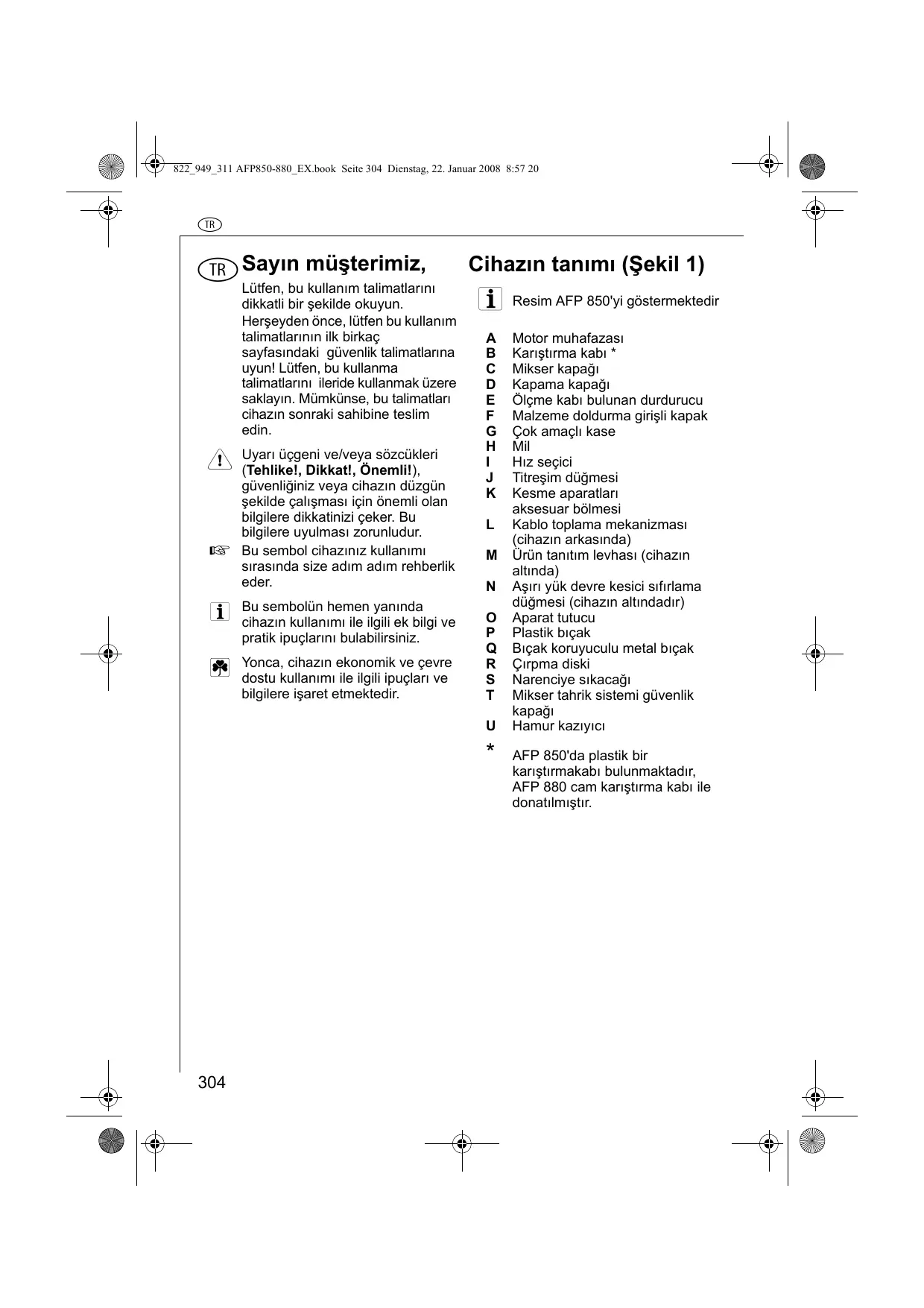 Cihaz sadece evde yiyecekleri ilemek icin tasarlanmistir. Uretici hatali vya amaç dişi kullanim nedeniyle olusan hasara karşi hcbir sorumluk kabul etmemektedir.