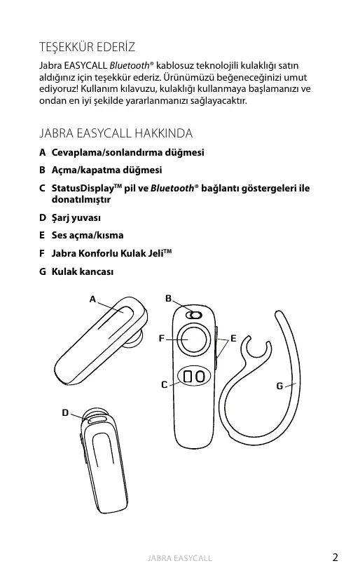 Téléchargez la notice de votre Bluetooth Kulaklık au format PDF gratuitement ! Retrouvez votre notice EASYCALL - JABRA et reprennez votre appareil électronique en main. Sur cette page sont publiés tous les documents nécessaires à l'utilisation de votre appareil EASYCALL de la marque JABRA.