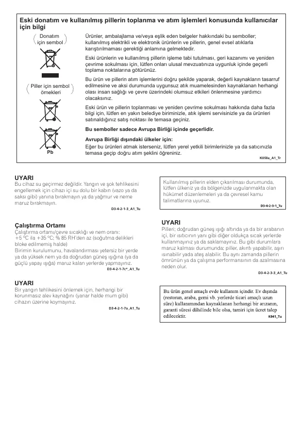 Kulanins pileri elden çikanimas: durumunda, Iütfen üikenz ya da bolgende uygulanmakta olan hükümet duzentemelen ya da çeuresel kamu talimatlanna wyunuz.