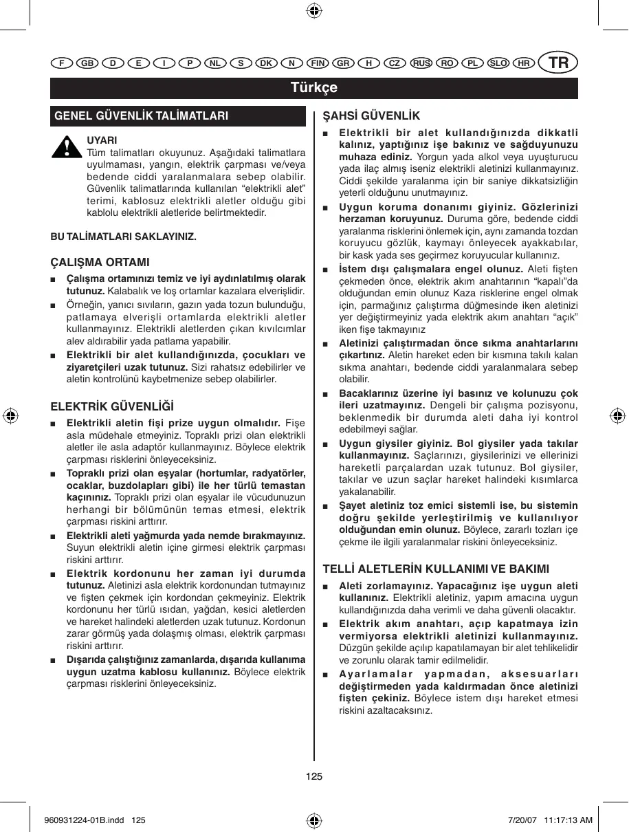Elektrikli bir alet kullandiginizda,oczuklari ve ziyaretçileri uzak tutunuz. Sizi rahsiz edebilirler ve aletin kontrlünu kaybetmenize sebeb olabilirler.