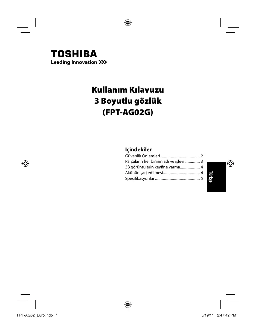 5/19/11 2:47:42 PM Kullanım Kılavuzu 3 Boyutlu gözlük (FPT-AG02G)