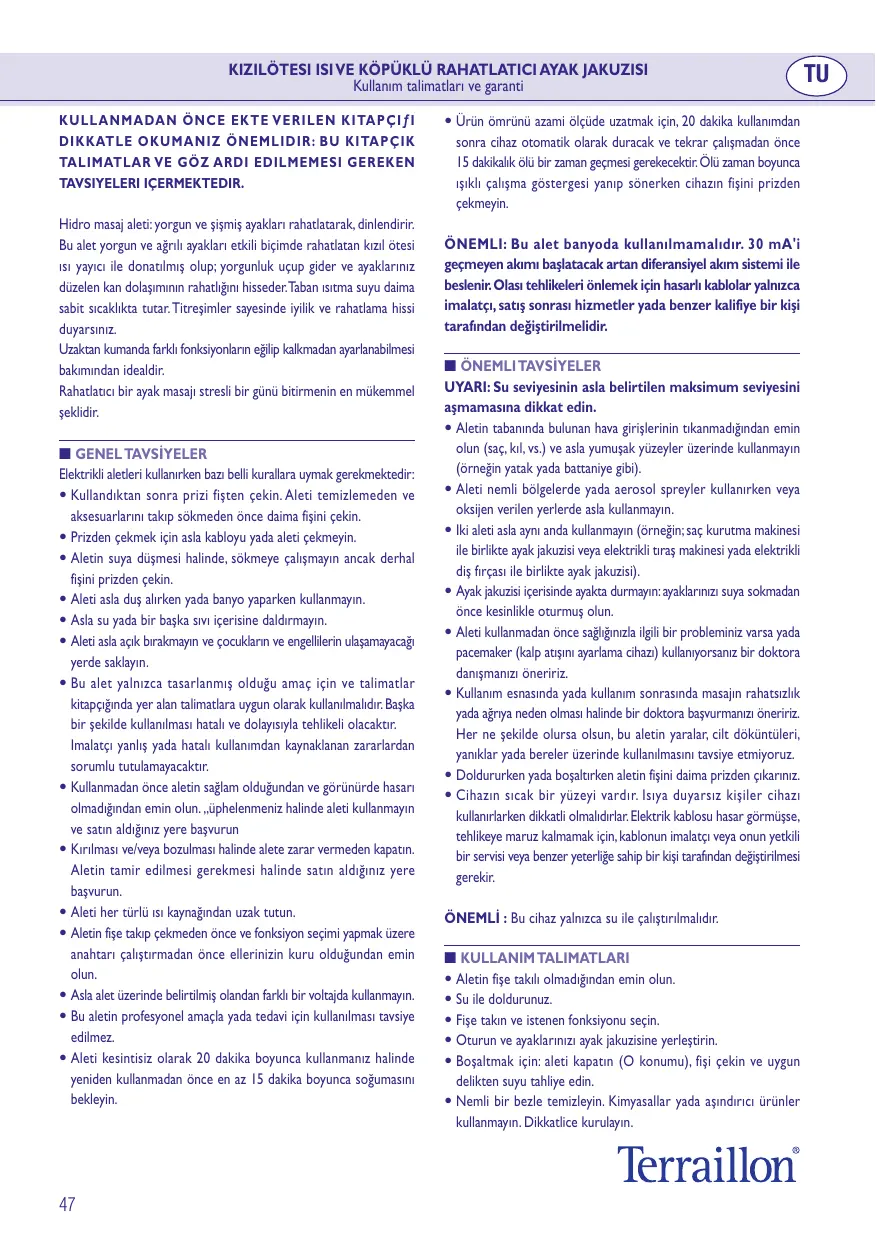 FR RELAXING FOOT JACUZZI WITH INFRARED HEAT AND BUBBLES Directions for use and guarantee