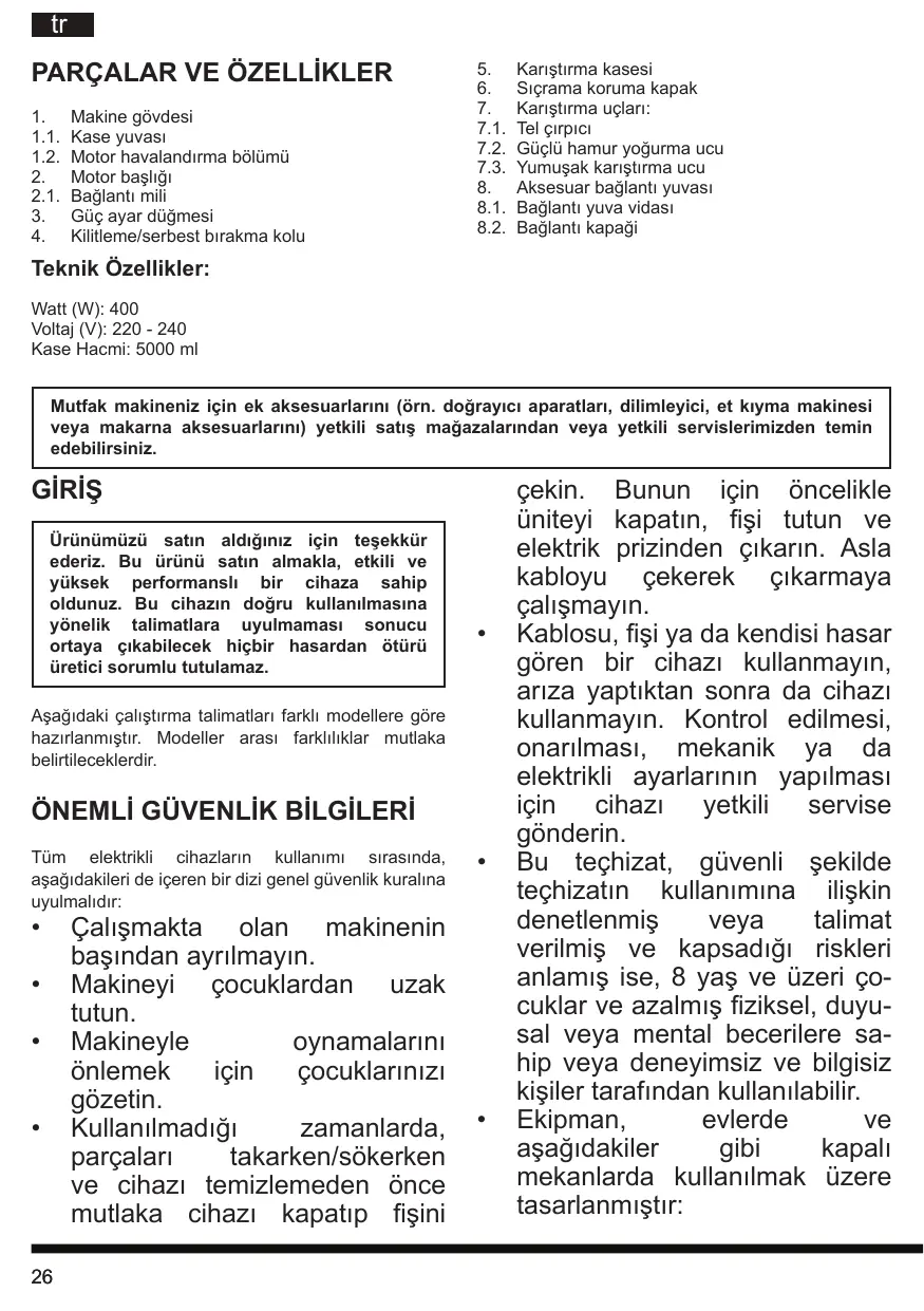 - Bu cihaz sadece ev kullanimi icindir, endustriyel kullanima uygun degildir. Kullanim amaci disinda kullanilmasi garantinin geçersiz kalmasina neden olur.