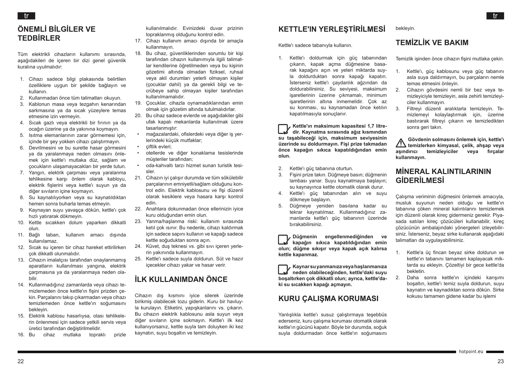 - Kettle sicakken dolum yaparken dikkatli olun.