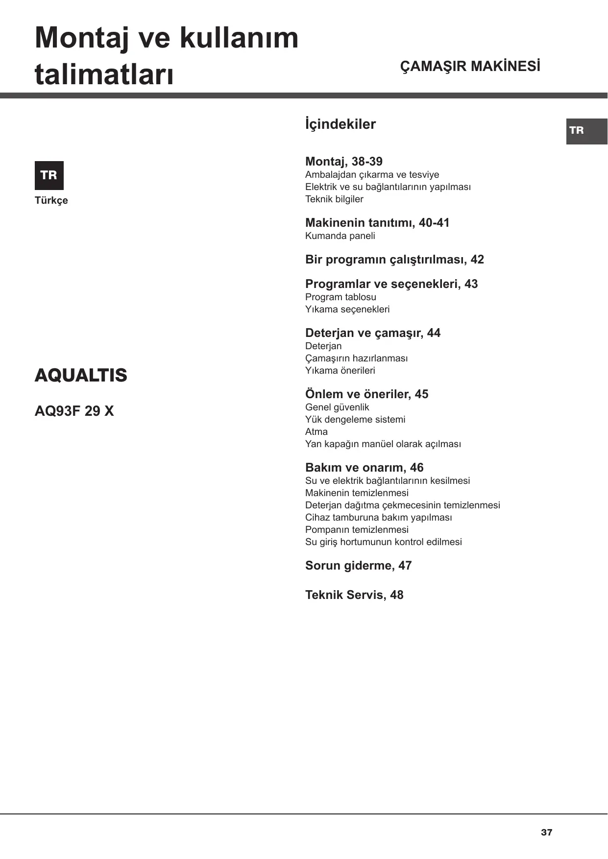 KULLANIM KILAVUZU AQ93F 29X EU HOTPOINT