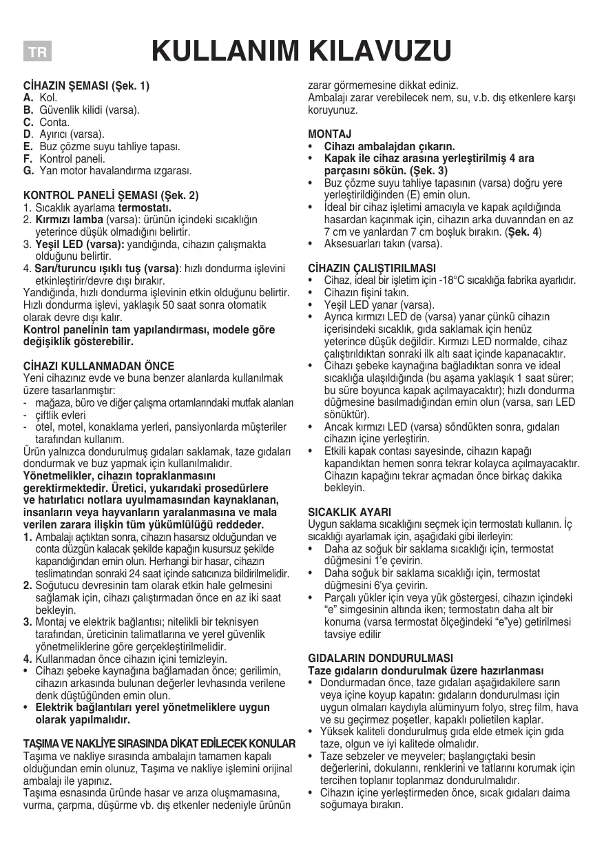 5. Il compressore funziona continuamente. • Nel prodotto sono stati introdotti degli alimenti caldi? • La porta del prodotto è stata tenuta aperta per un periodo prolungato? • Il prodotto è posizionato in una stanza troppo calda o vicino a una fonte di calore? • Il termostato è nella posizione corretta? F. Bandeau de commande. G. Grille latérale de ventilation du moteur.
