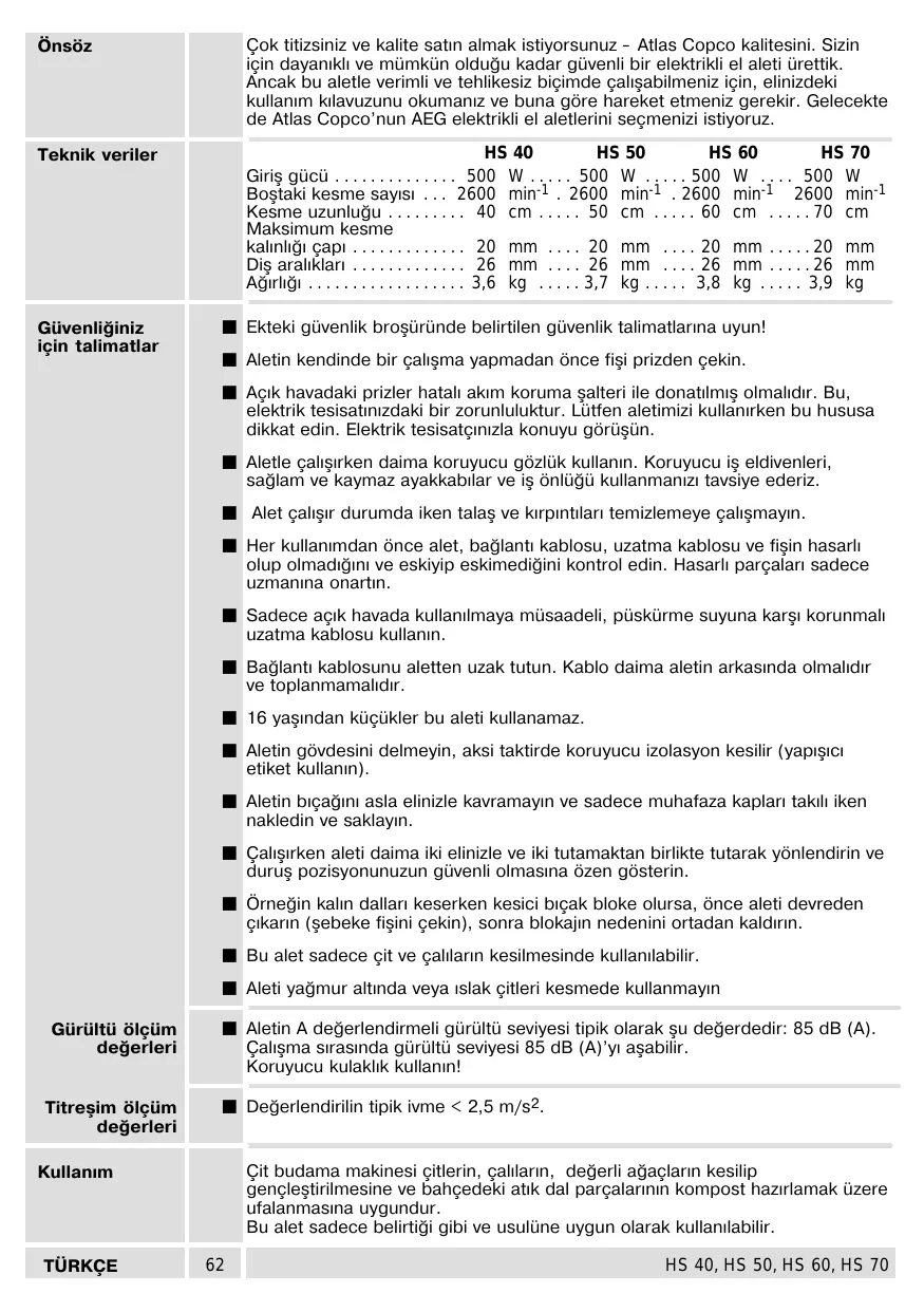 | TÜRKCEE | 64 | HS 40, HS 50, HS 60, HS 70 |
