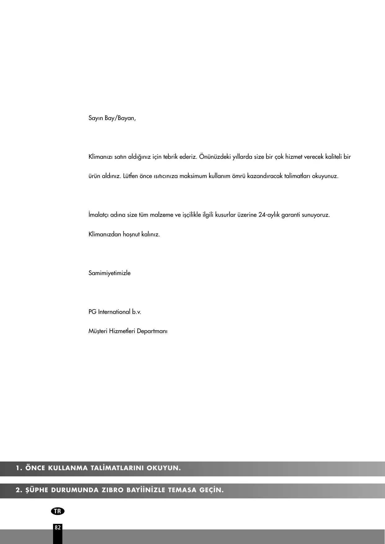 Klimaniz1 satin alciginiz için tebrik ederiz. Onünüzdeki yillarda size bir çok hizmet verecek kaliteli bir