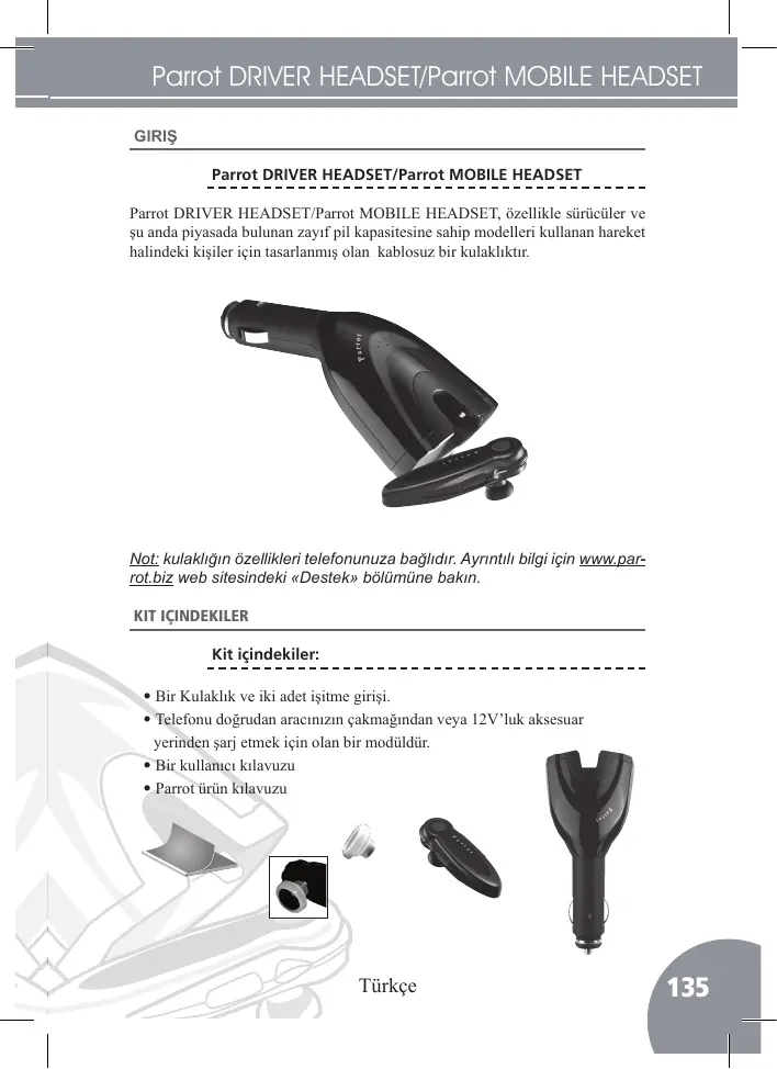 MOBILE HEADSET - Kulaklık PARROT - Notice d'utilisation et mode d'emploi gratuit